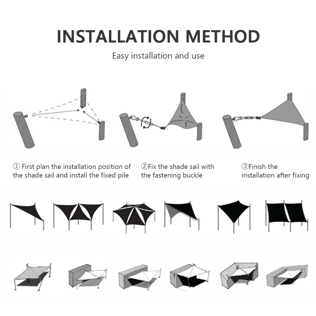 3. Curved edge design: each cutting arc of the shade sail guarantees the tension of each corner of the shade sail, stylish and elegant, beautiful design
