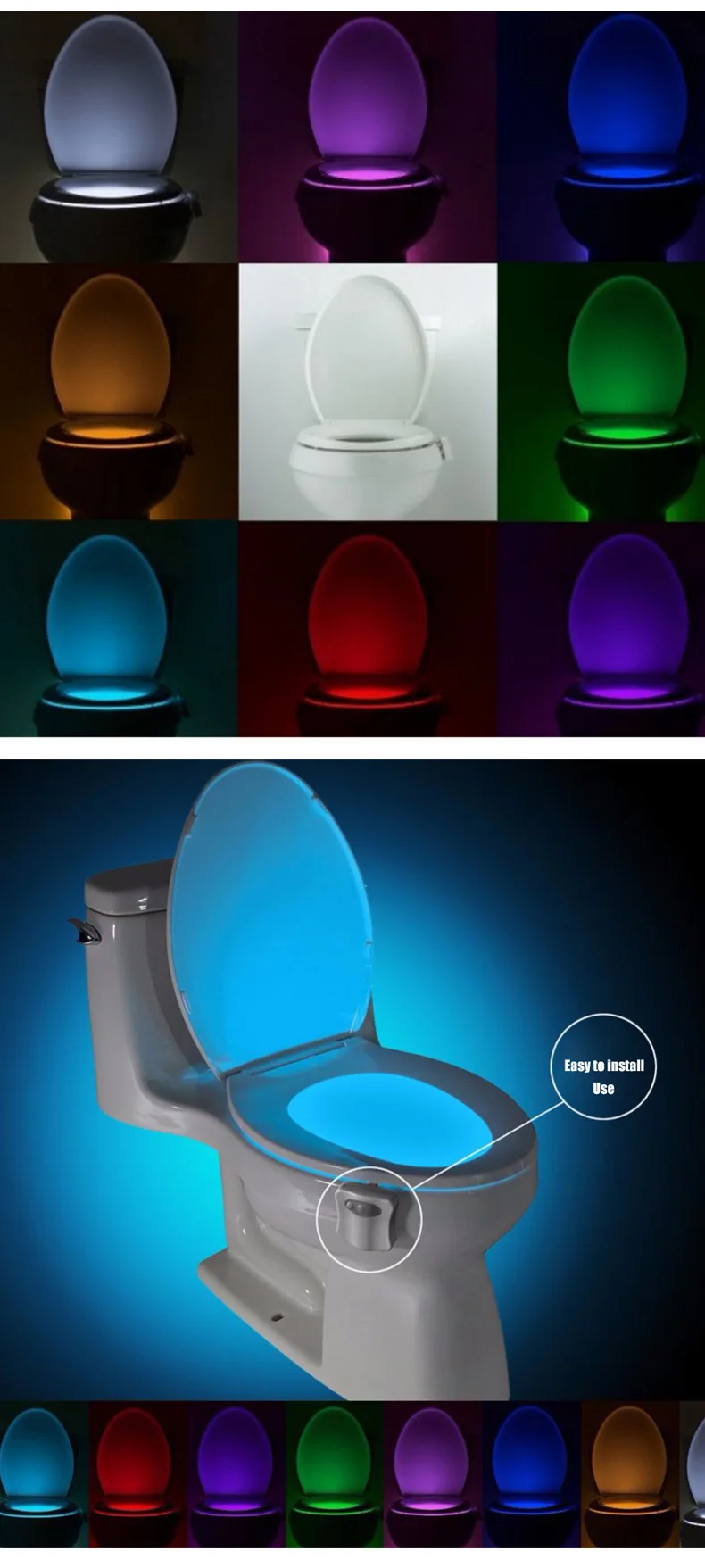Luz Nocturna inteligente para Баньо, luz светодиодный de movimiento del cuerpo, lámpara con Сенсор de encendido/apagado para asiento, 8 цветов, luces ПИР, iluminación светодиодный de decoración