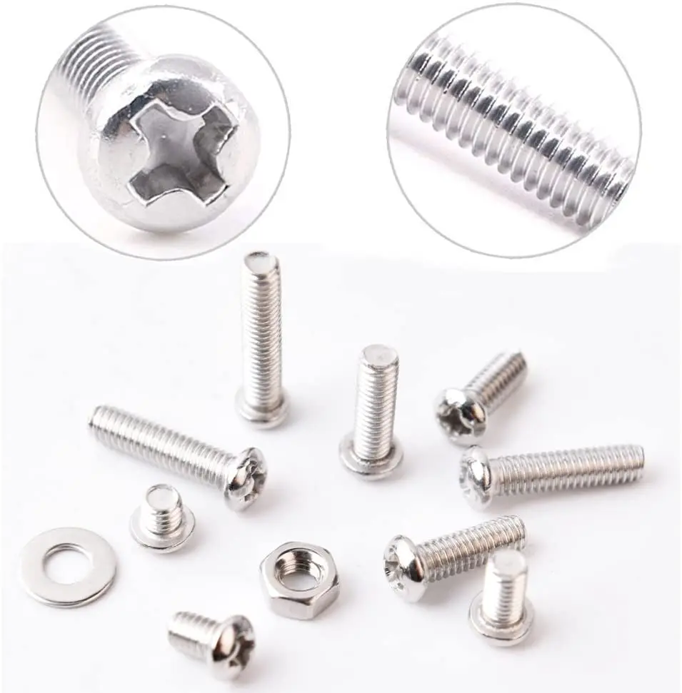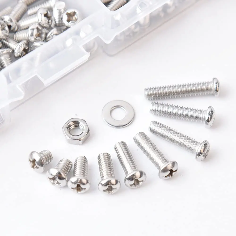 M3 ассортимент винтов комплект 304 нержавеющая сталь Phillips головка сковороды винты болты гайки замок плоские шайбы с коробкой для хранения