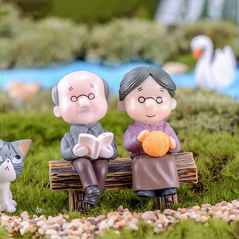 Kawaii фигурки бабушка дедушка старая пара DIY мини-Сказочный Сад орнамент кукла Пара подарочные фигурки Миниатюрные