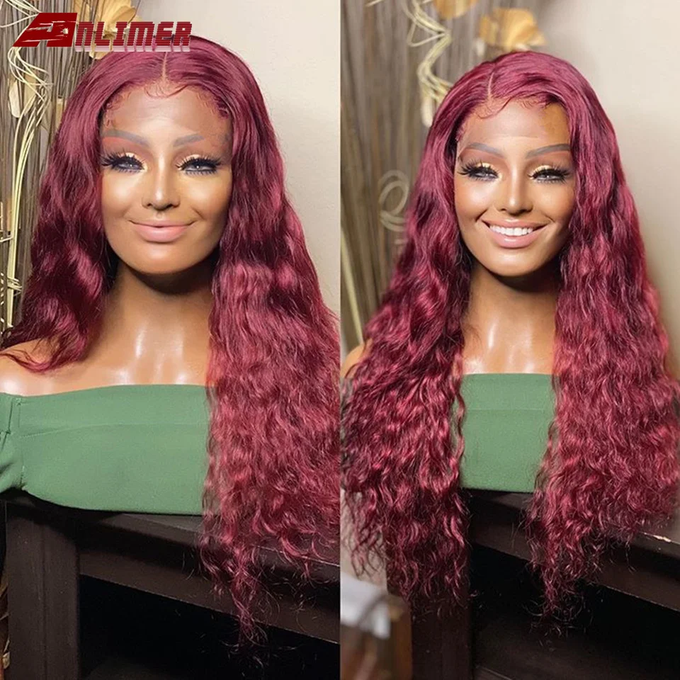 99J бордовый красный 360 кружева спереди al человеческие волосы парики предварительно выщипывания воды глубокая волна 13X6 кружева фронта бразильский Remy парик 180 плотность
