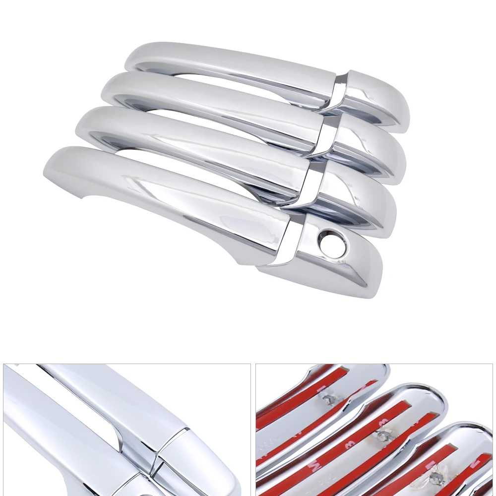 Высококачественная стильная хромированная крышка для дверных ручек для отличной защиты автомобильных дверных ручек. И подчеркнет внешний вид автомобиля. Изготовлен из высококачественного АБС-хромового пластика. Они формовали контуры ручек за пределами автомобиля для достижения пользовательской посадки. Хромированная крышка дверной ручки обеспечивает максимальное царапание дверной ручки. В то же время улучшает внешний вид автомобиля. Инструкции по установке: 1. Очистите свой автомобиль 2. Подтвердите положение предмета, в котором вы смотрите Ваша рука 3. Вставьте двустороннюю ленту 4. Успех! Красивые дверные ручки представлены