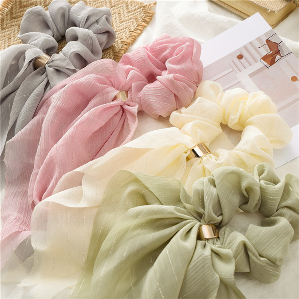 Двухслойный бантик шифоновый длинный ленточный резной шарф для волос резинка для волос