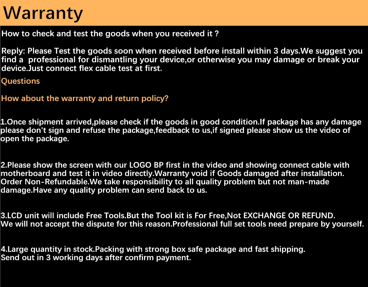 Описание товара 1. ЖК-дисплей в сборе для iphone 6S 2. Может заменить неисправный/бракованный/не реагирующий или сломанный/поцарапанный задний/ЖК-экран. 3. Все ЖК-дисплеи были протестированы перед отправкой. Проверьте один за другим. Посылка включает в себя: 1 ЖК-дисплей в сборе + 1 Бесплатные инструменты + 1 защитный чехол + 1 закаленное стекло