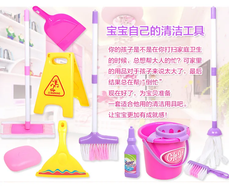 Детский мини-набор инструментов для уборки, детский игровой домик, ведро для уборки метлы, подарок, чистые мусорные ведра, инструменты