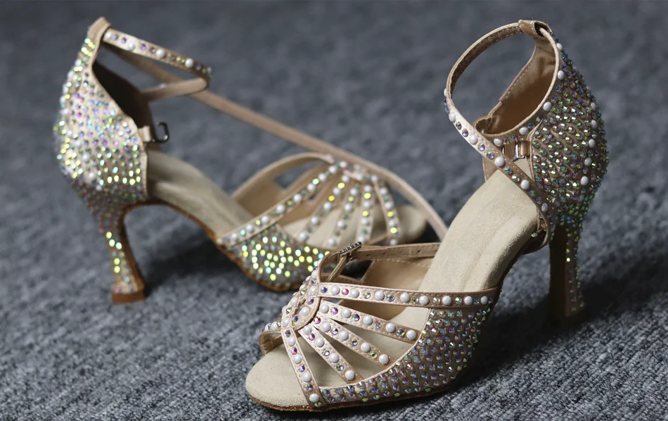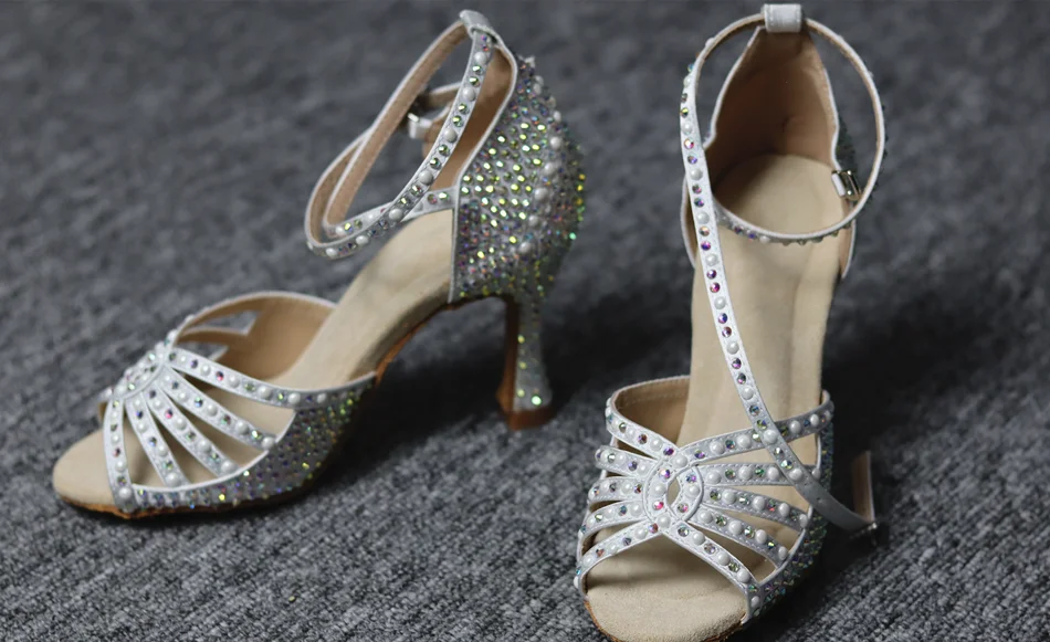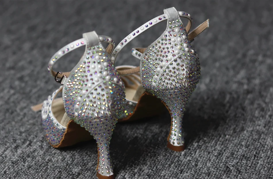 Обувь для латиноамериканских танцев и сальсы; Обувь для танцев; Обувь для женщин на каблуке по индивидуальному заказу; Мягкая женская обувь для девочек; Атлас и стразы; Каблук со стразами