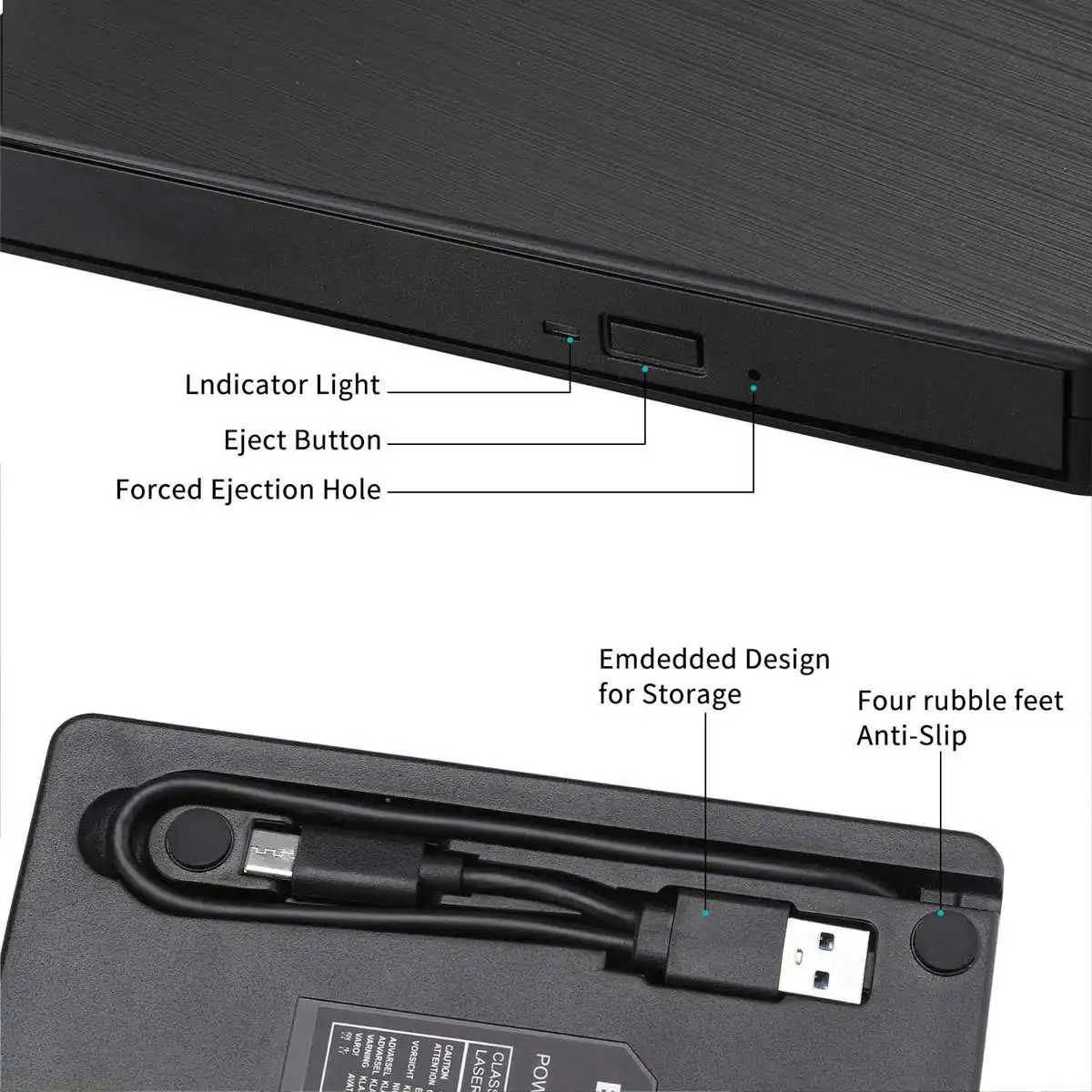 Особенности: Функция чтения/записи DVD / CD и функция горения CD: этот внешний CD / DVD диск читает CD-ROM / DVD-ROM, CD-R / CD-RW / DVD-R / DVD-R-DL / DVD-RW / DVD-RAM / DVD + R / DVD + R-DL / DVD + RW. Поддержка чтения sd-карт: это также устройство для чтения sd-карт. Стабильный источник питания возможен, потому что все порты поставляются с питанием в то же время путем подключения кабеля питания к адаптеру, если источник питания не является достаточным одновременно.