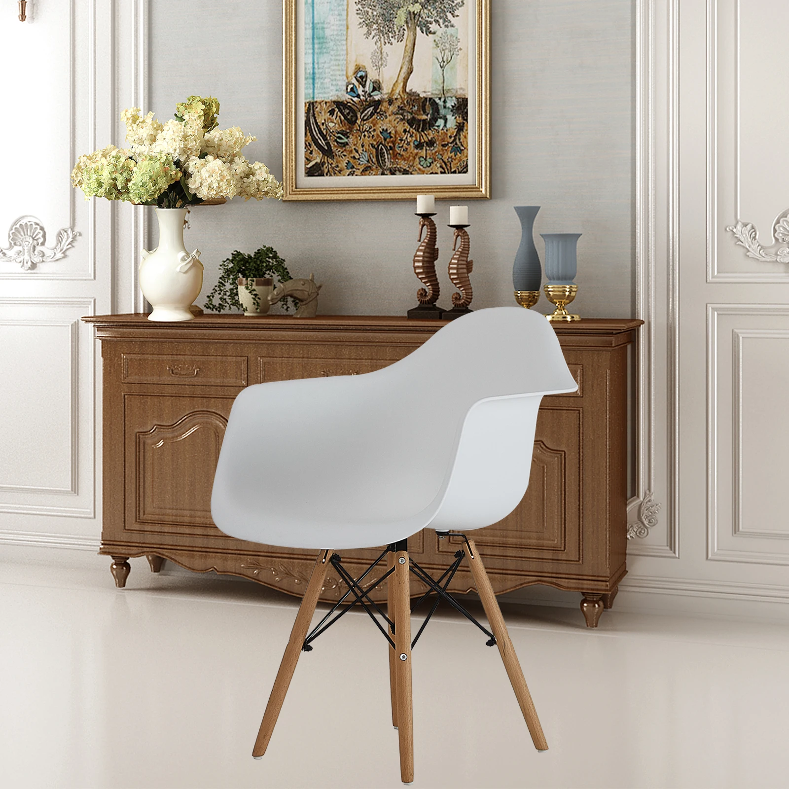 Эргономичный дизайн: этот стиль белого стула обеспечивает функциональность и комфорт для вас и ваших гостей. Его дизайн обеспечивает поддержку спины и рук.