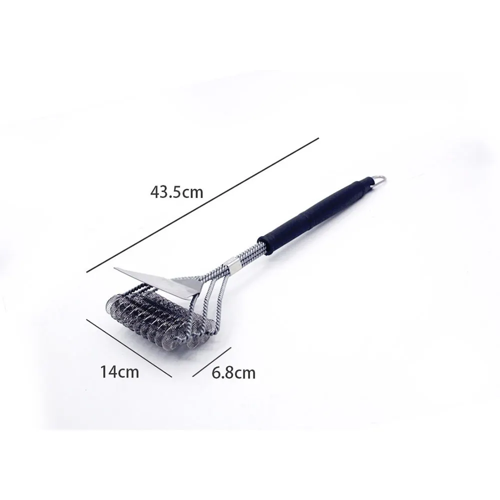 2. Проволочные щетины из нержавеющей стали плотно переплетены с бесшовными нитями. Сверхпрочный скребок для барбекю имеет длинные и острые края для отличного соскабливания при чистке.