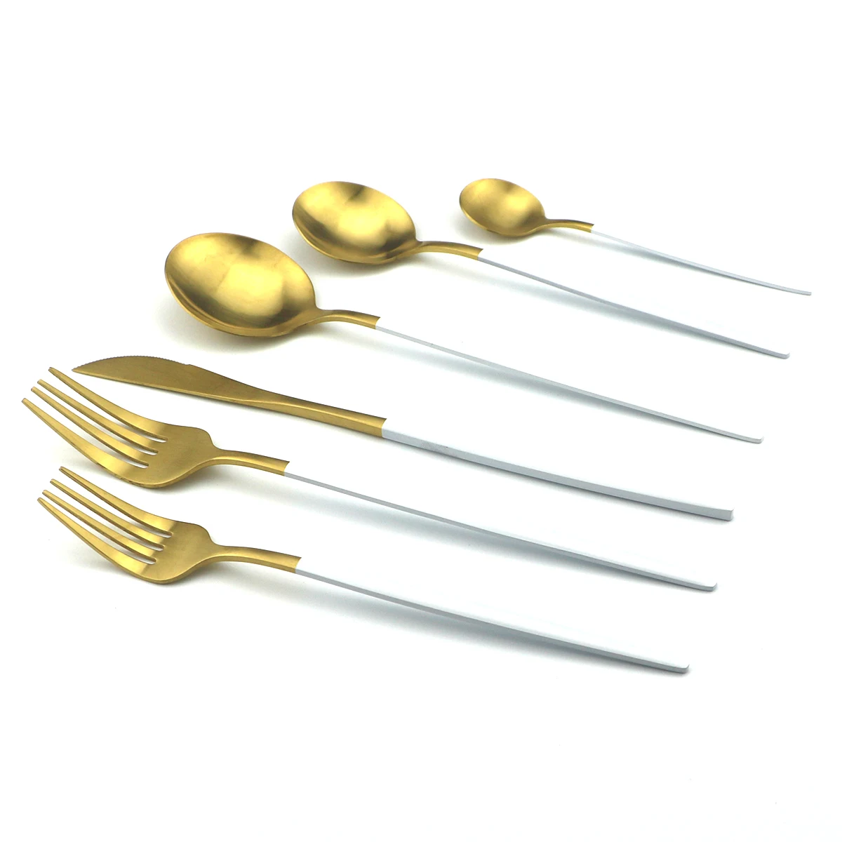 Всего 6 штук в наборе, включая 1 нож для ужина, 1 ложка для ужина, 1 ложка для десерта, 1 вилка для ужина, 1 вилка для десерта, 1 чайная ложка.