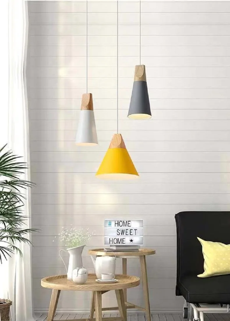 Спецификация 100% новый, высокое качество, хорошая упаковка Название: светодиодный подвесной светильник Диаметр абажура: 14 см/23 см/25 см Длина провода: 1 м Цвет лампы: черный, белый, желтый, зеленый, серый Материал: дерево, алюминий Источник освещения: E27 * 1 Макс 60 Вт, AC110-240v Для: гостиной, спальни, столовой, комнаты для учебы и т. д. Посылка: 1 * подвесной светильник