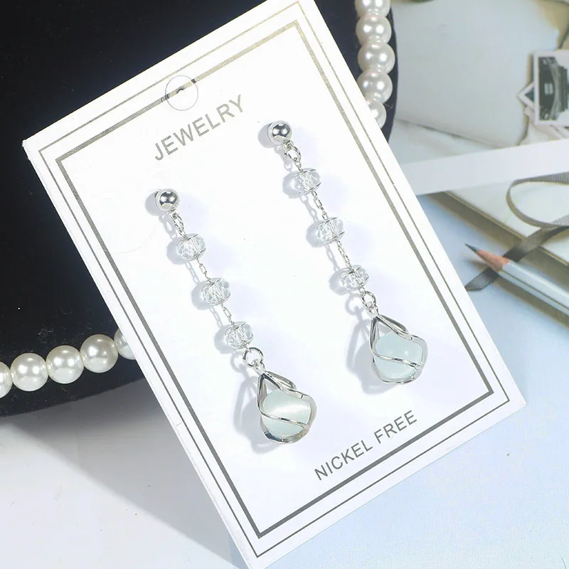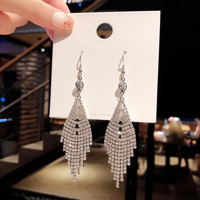 Женские Висячие серьги из серебра 100% пробы вечерние кристаллами австрийского