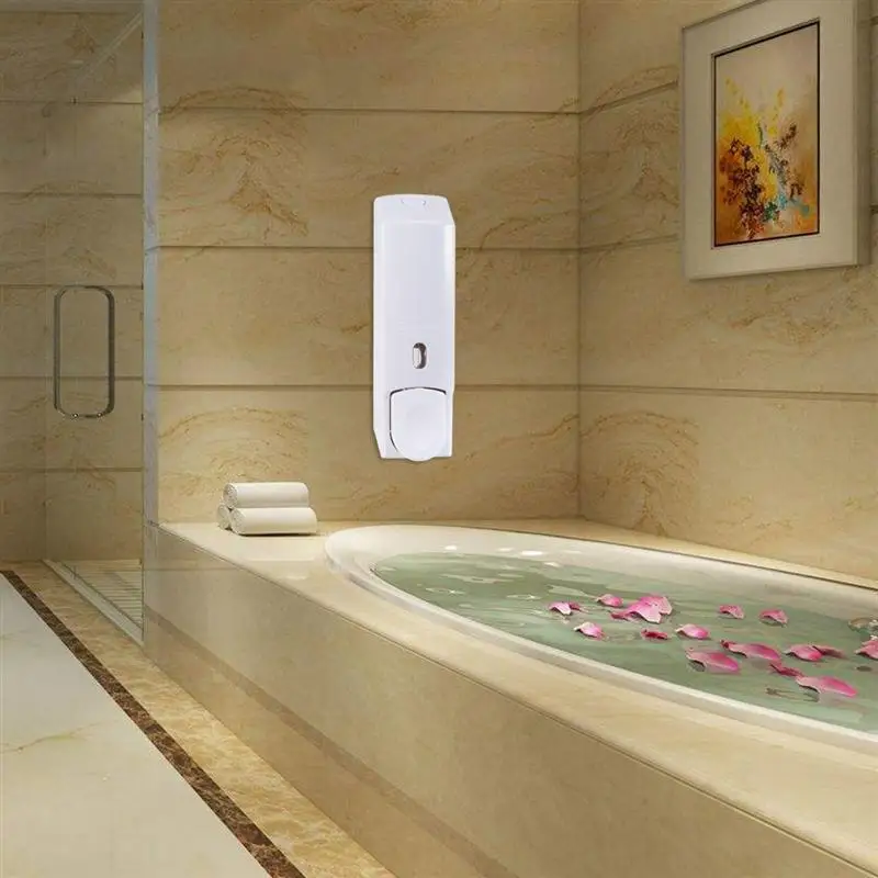Изготовлен из АБС-пластика и подходит для дозирования геля для душа, шампуня, лосьонов для мытья, этот дозатор мыла имеет одну головку и может быть закреплен на стенках, все, что вам нужно сделать, это аккуратно нажать кнопку, затем мыло выйдет.