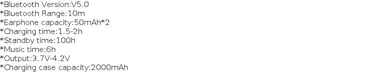 8. Время воспроизведения музыки (Одна зарядка): около 10 часов (зарядная коробка может заряжаться через Bluetooth примерно 18 раз).