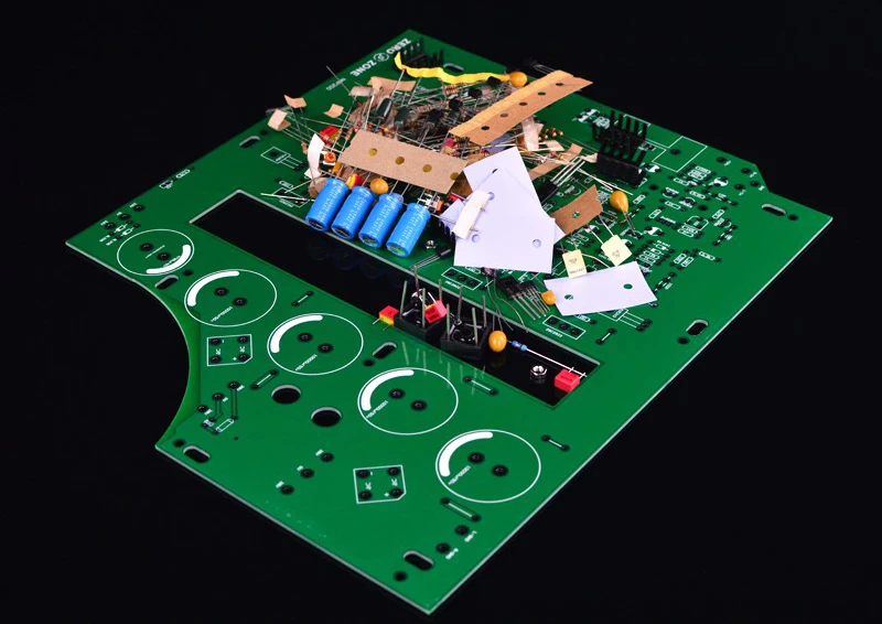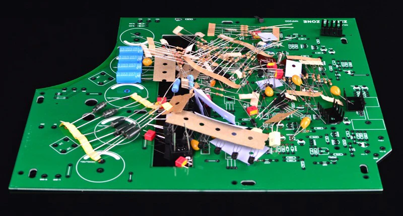 ● Размер печатной платы: 280 мм * 235 мм ● FR4 1,6 мм толщиной, спереди с медным покрытием для того, чтобы укрепить прочность ● Двойная панель джемпер без примесей сварочная установка элементах обеспечивается повышенное удобство ● Бортовой параметры компонента ● Рабочее напряжение: AC28V-0-AC28V X 2 группы ● Выходная мощность: 75 Вт + 75 Вт при нагрузке 8 Ом ● Усиление напряжения + 29 дБ ● Входное сопротивление 18 ком ● Частотная характеристика-3 дБ при 2 Гц и 65 кГц