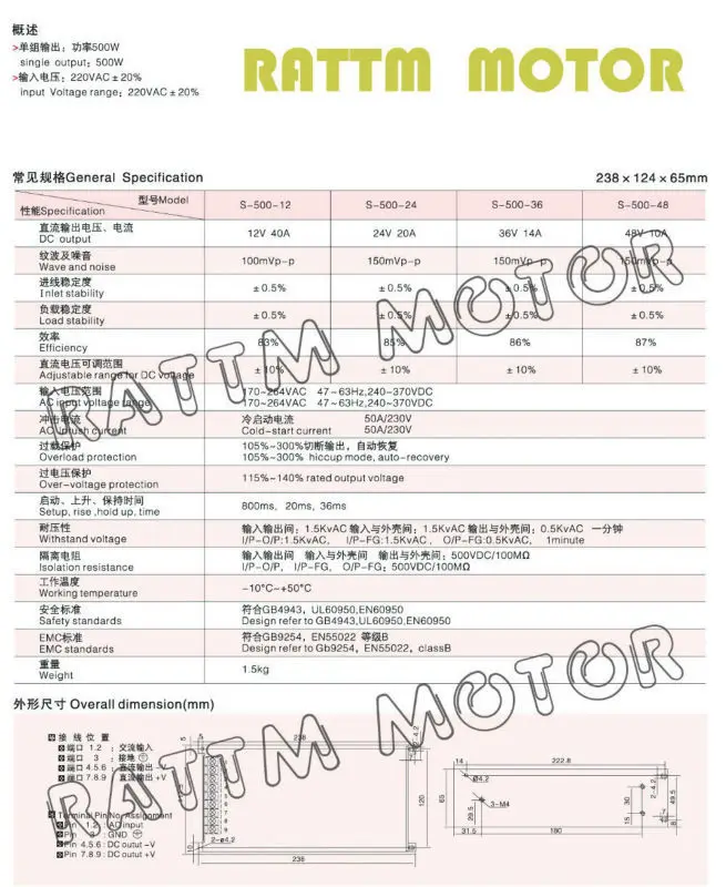Примечание: У нас также есть 500 Вт 12 В, 15V, 24V, 27V, 48 В, если вам нужно, пожалуйста, сообщите мне перед оплатой!