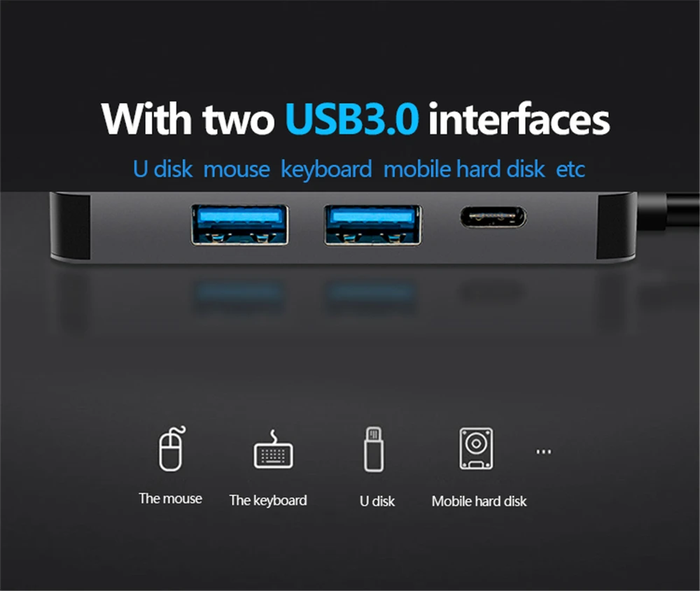 1. Многофункциональный-USB C к HDMI адаптеру с 2 USB3.0A и PD зарядным портом,Включите одновременную вставку 4 устройств. Hdmi-порт позволяет вам зеркальить или расширить экран и напрямую передавать видео 4K UHD или Full HD 1080p на HDTV, монитор или проектор; порт зарядки PD может быстро заряжать подключенные устройства во время отображения или передачи данных; 2 порта USB3.0 позволяют подключать клавиатуру, мышь, большой палец, Жесткий диск для вашего MacBook Pro или других устройств Type-C при подключении к HDMI.