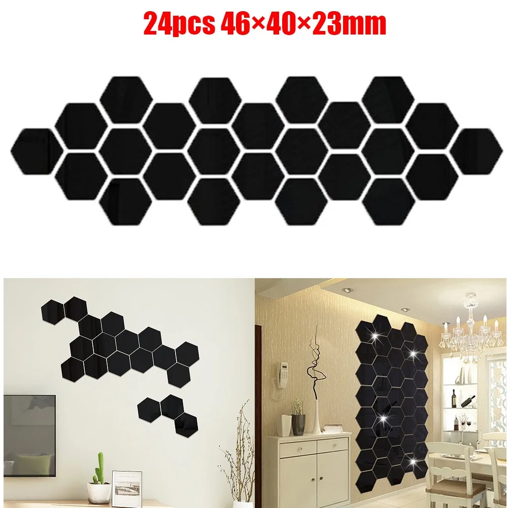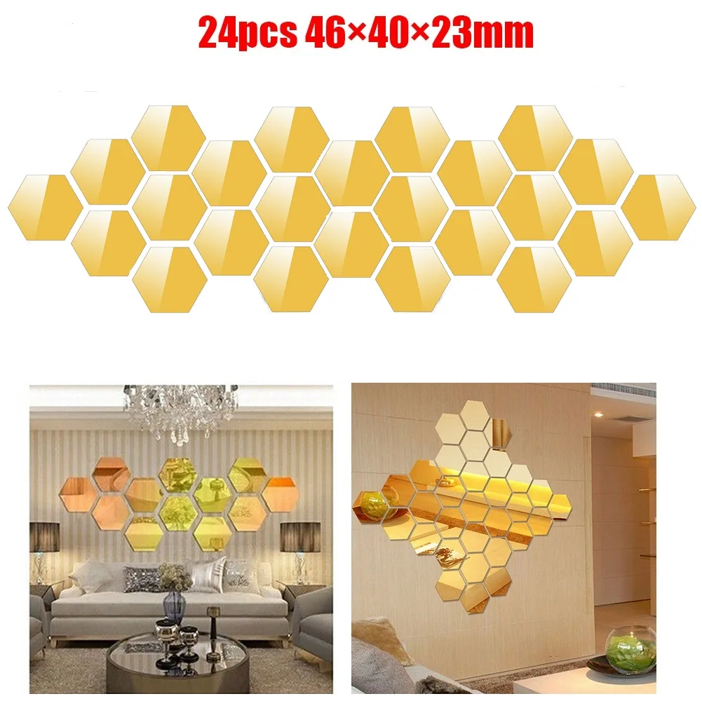 * 24 шт./компл. 3D зеркальный шестигранный настенный стикер для домашнего декора