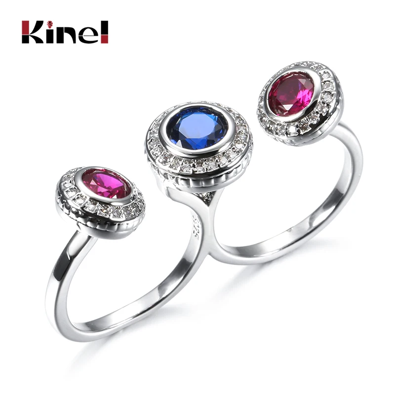 Kinel Boho тибетское серебряное кольцо с двумя пальцами для женщин мозаичное обручальное кольцо с синим цирконием модные ювелирные изделия для вечерние Тип изделия: Кольцо Основной камень: циркон Другой камень: циркон Материал: серебристый цвет Случаи: свидание/вечерние/Выпускной/подарок/День Святого Валентина
