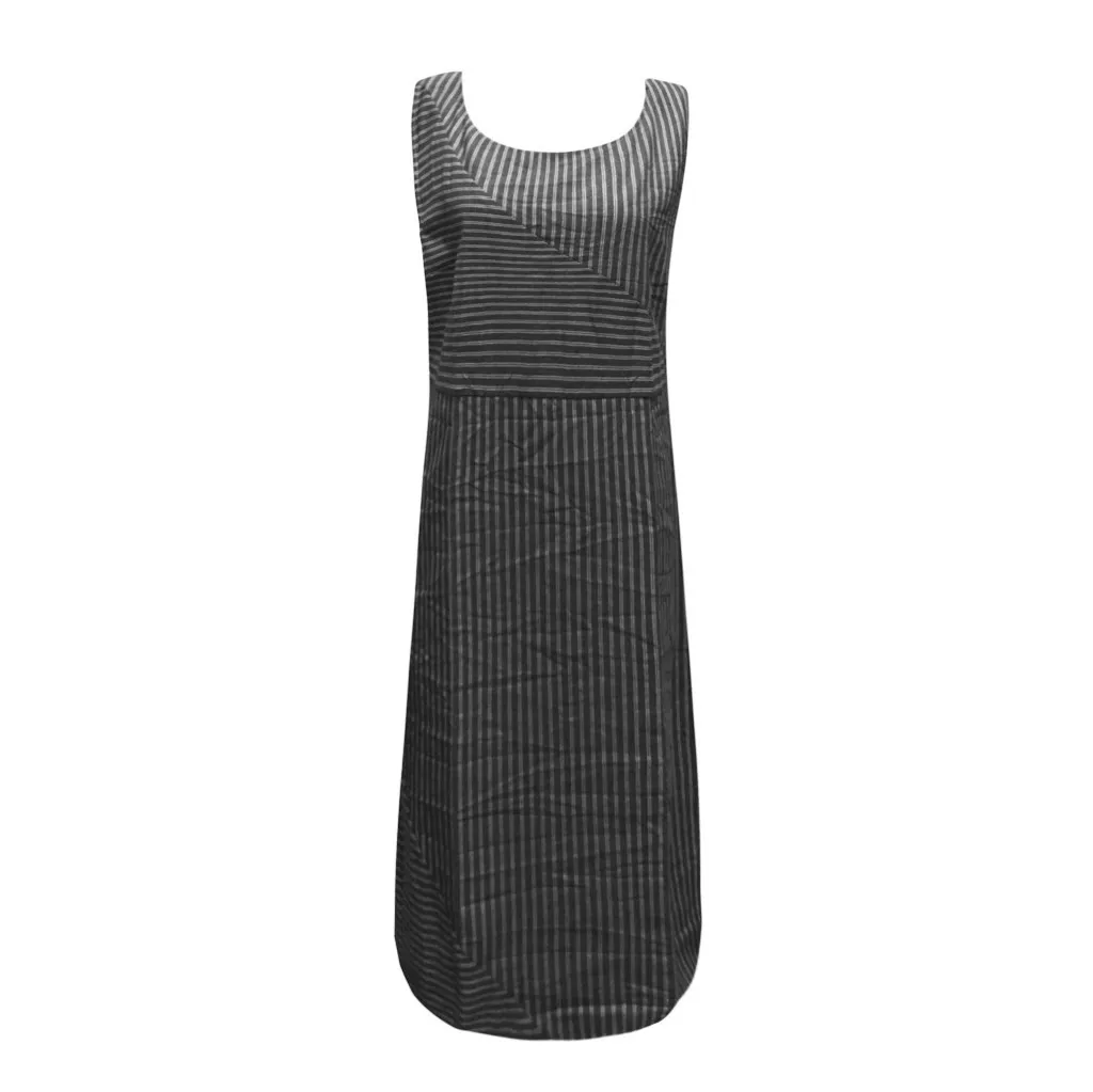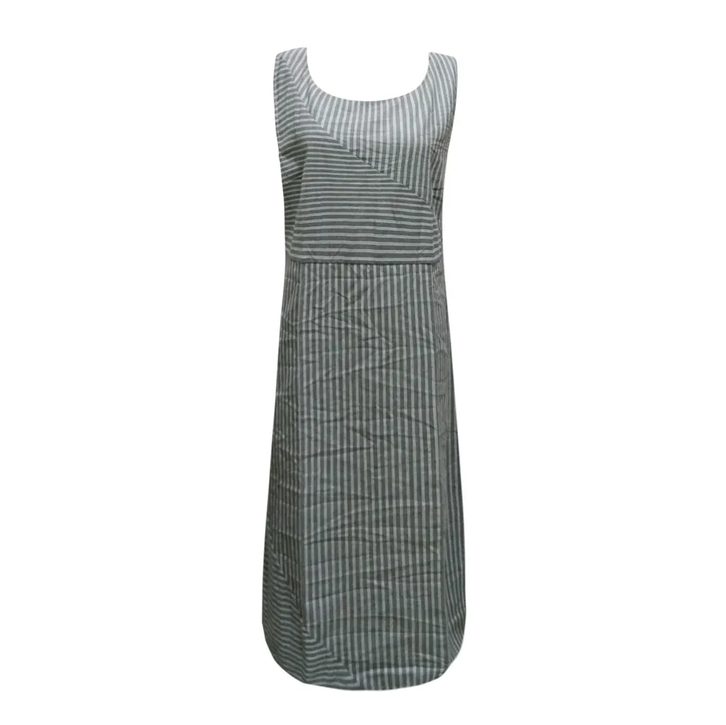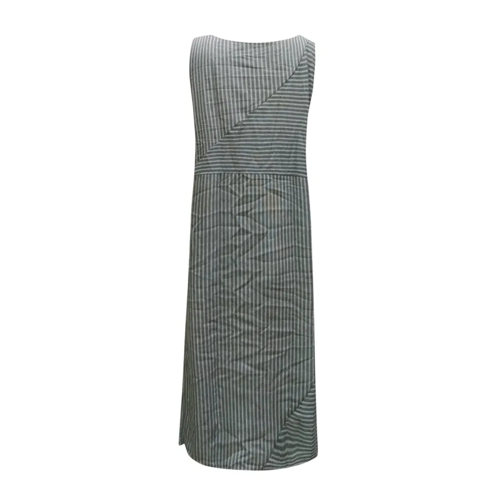 Женское повседневное длинное льняное платье в полоску, без рукавов, с вырезом лодочкой