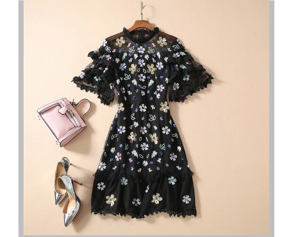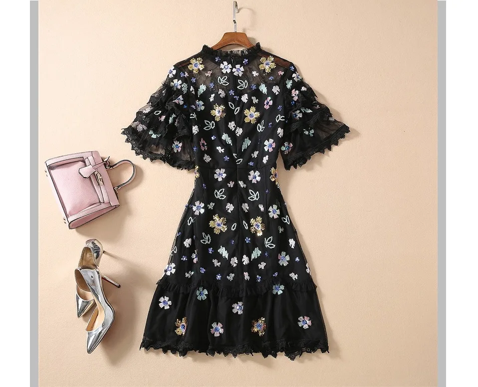 Женское тонкое джинсовое платье длинное в полоску сбоку с коротким рукавом |