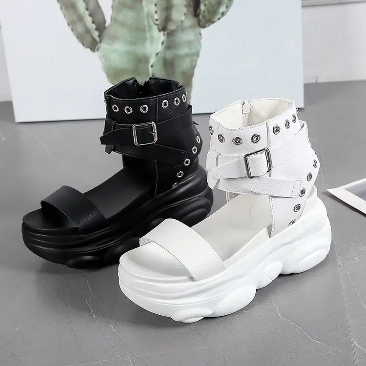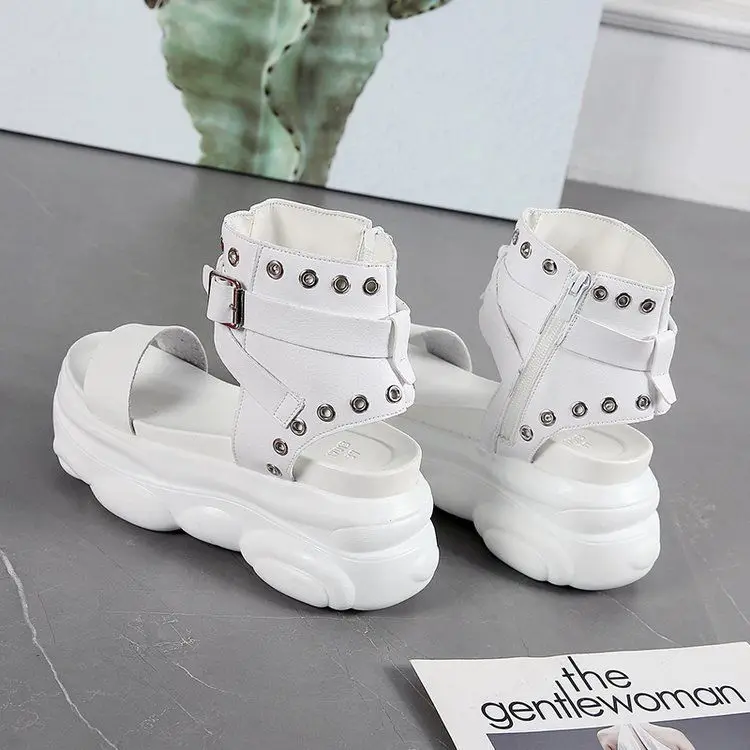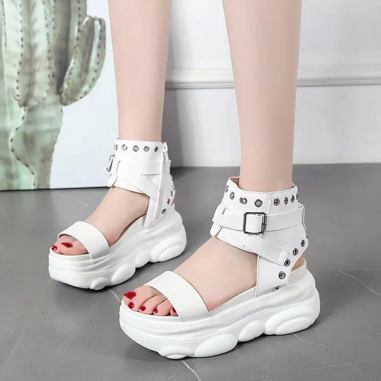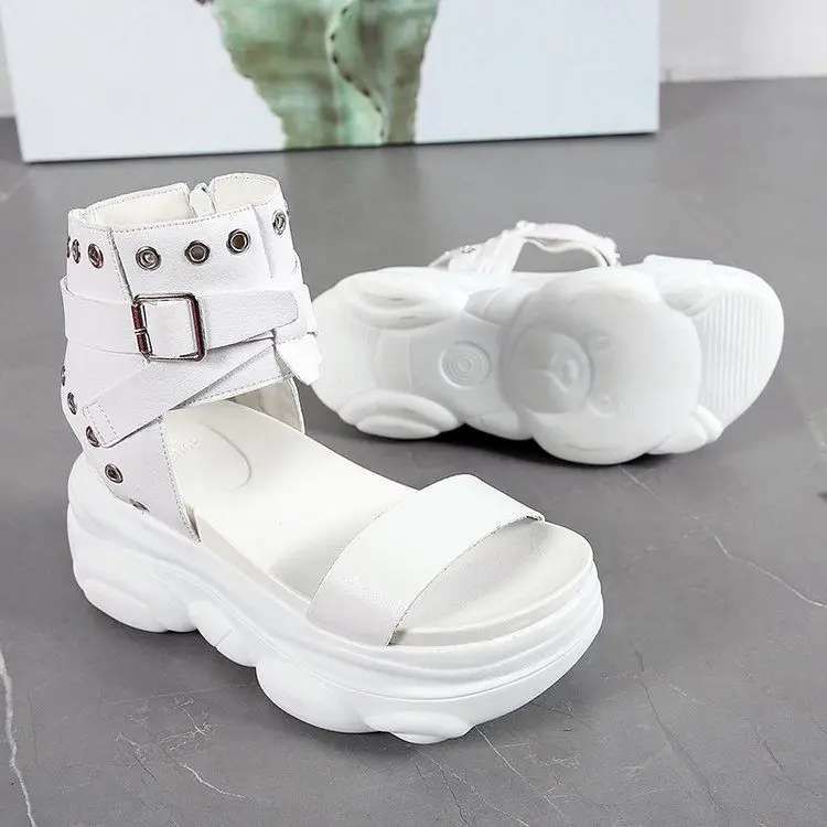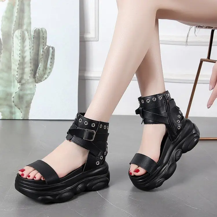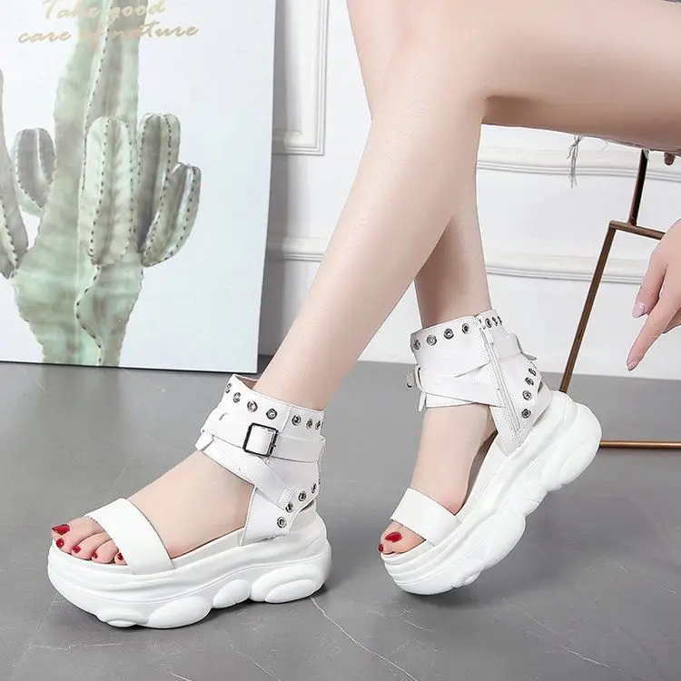 Сандалии женские кожаные на платформе повседневная обувь массивной подошве с