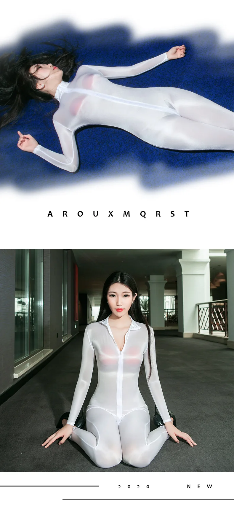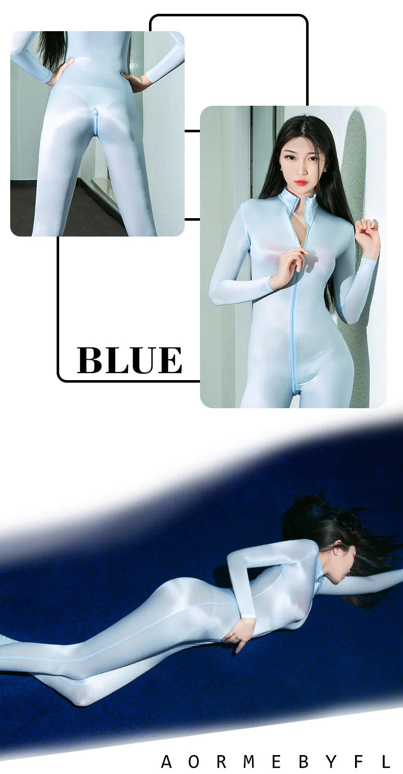 Сексуальное боди с открытым шаговым швом, блестящее боди с масляным блеском, прозрачное боди, сексуальное облегающее боди яркого цвета F34