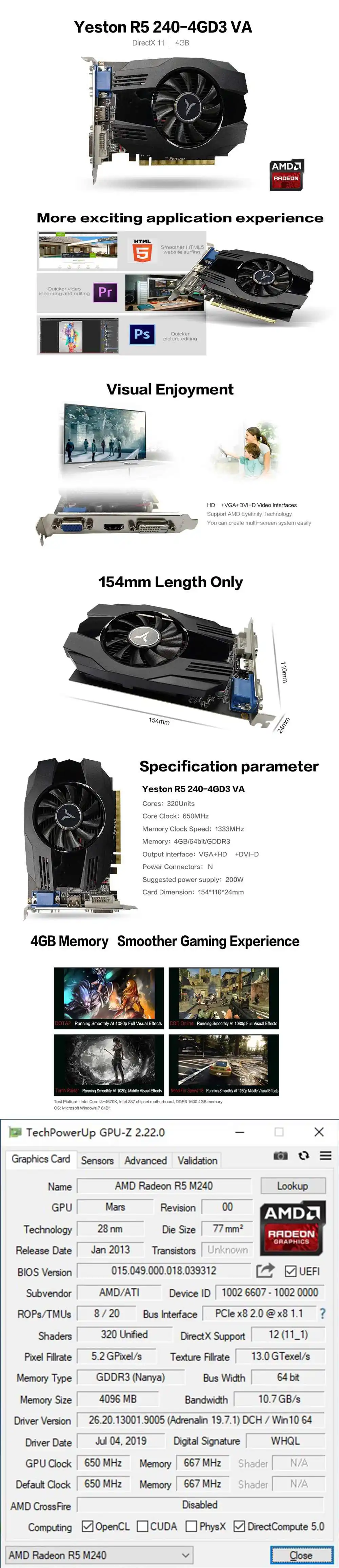 Игровая видеокарта Yeston R5 240-4GD3 VA 320 блок 650 МГц 1333 МГц 4 Гб GDDR3 64Bit игровая видеокарта