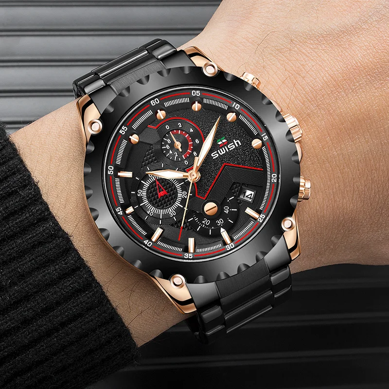 Мужские наручные часы SWISH, роскошные брендовые деловые кварцевые часы из нержавеющей стали с водонепроницаемым хронографом, спортивные наручные часы с датой
