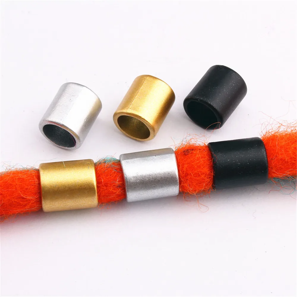 100% новый и высокое качество Материал: пластик Размеры: 10 мм x 12 мм/0,39x0,47" Внутреннее отверстие Диаметр: 8 мм/0,31" Вес: 0,4 г Цвет: золотой, серебряный, черный Посылка включает в себя: 100/50/10 x дреды бусины