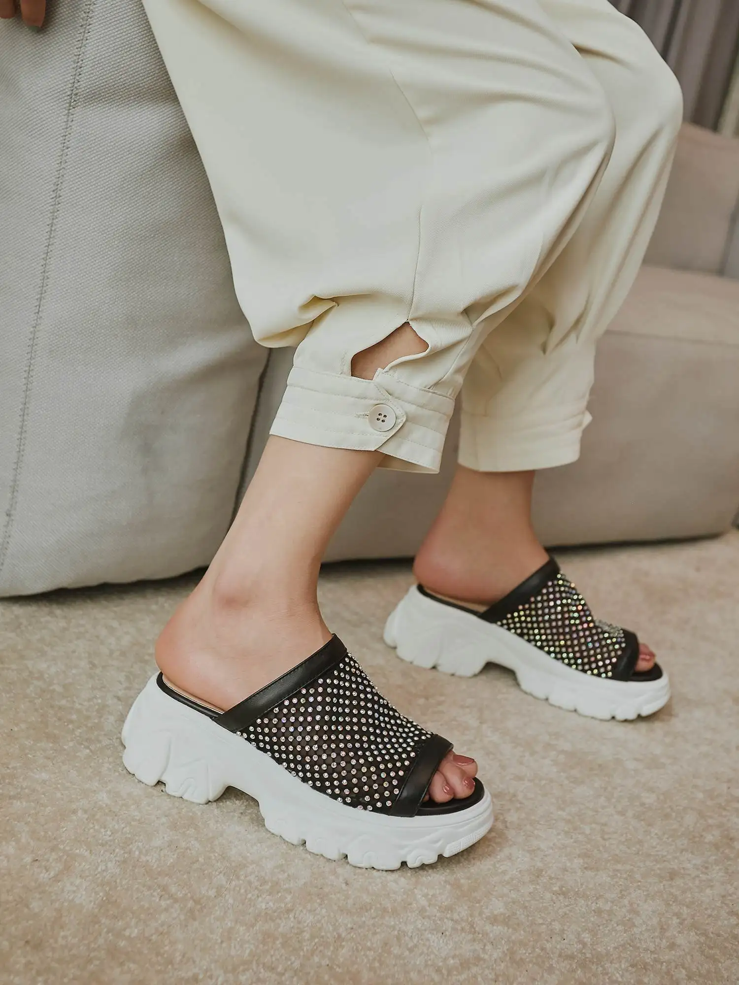 Материал верха: коровья кожа + стразы Внутренний материал: микроволокно Материал стельки: микрофибра Высота каблука: 6 см