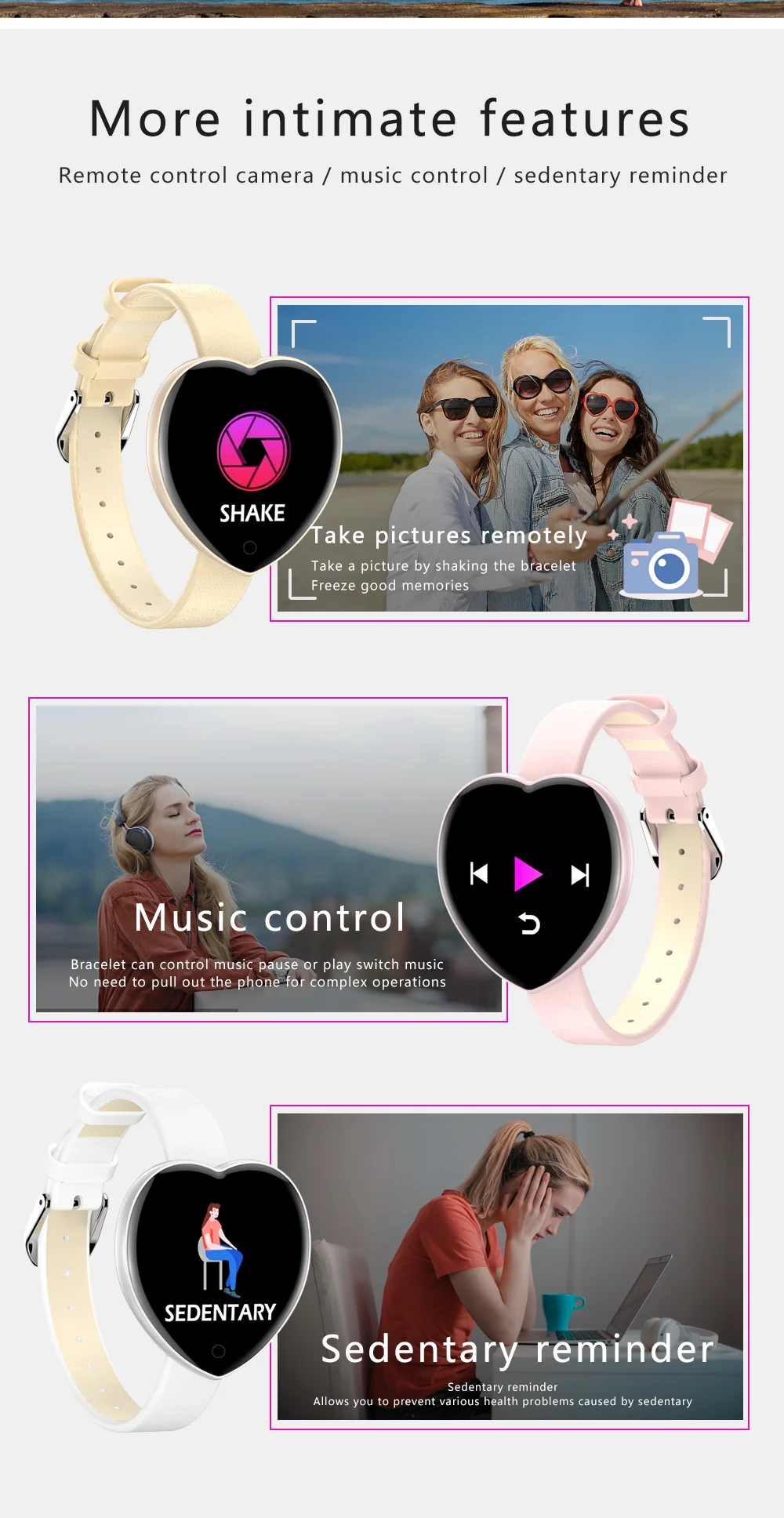 T52 Модные женские Смарт-часы, браслет для фитнеса, пульсометр, монитор, в форме сердца, кислород, модные женские sma