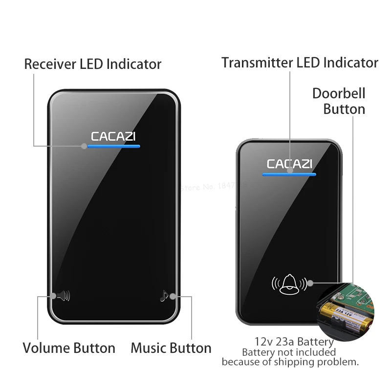 1. Независимо от того, установлена ли кнопка правая батарея, требуется щелочная батарея 23A12V (не входит в комплект) 2. Вы можете соединить кнопку с приемником.