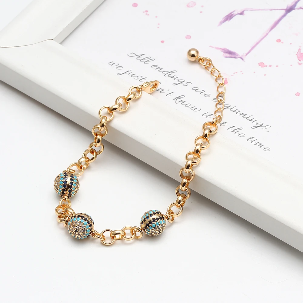 Шарм-браслет с шариком и микрозакрепкой от сглаза розовый Золотой Серебряный цвет цепочка турецкий глаз регулируемые ювелирные изделия для женщин BD166