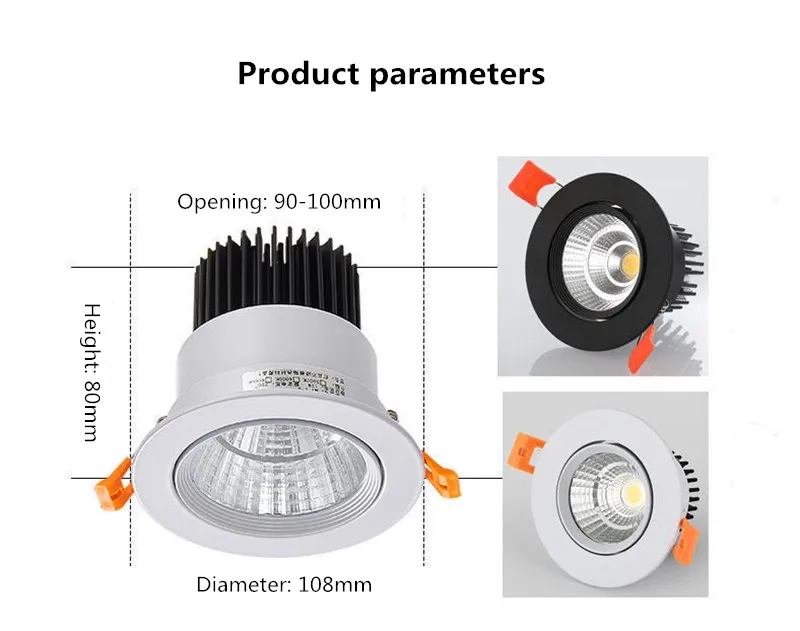 Модель: светодиодный потолочный светильник COB/светодиодный потолочный светильник Мощность: 3 Вт 5 Вт 7 Вт 9 Вт 12 Вт 15 Вт 20 Вт 30 Вт 40 Вт Цвет: теплый белый (2900- 3100K); Белый (4000-4500K), холодный белый (6300-7000K) Вход Напряжение: AC110V/220V Сила света: 100 (лм)/Вт Материал корпуса: токарный алюминий Чехол Цвет: Гриль Белый корпус + черный радиатор Светодиодный индикатор рабочей температуры: -25 °C - + 65 °C Длительный срок службы достигает 50000 часов Отличная светоотдача Одобрено: CE/RoHS 3 года бесплатных заменителей