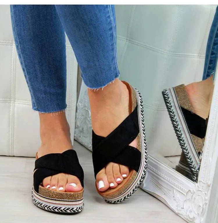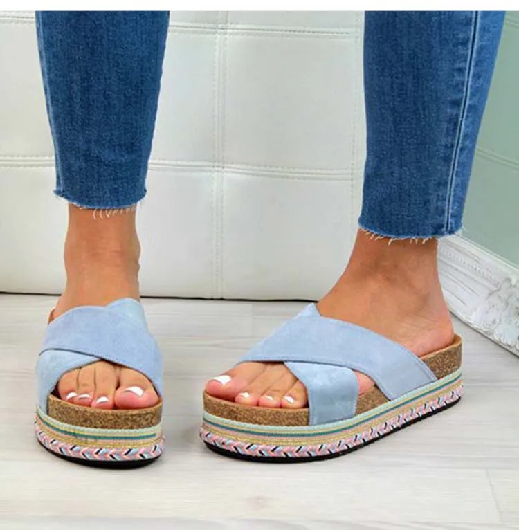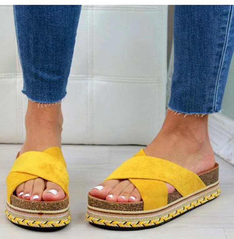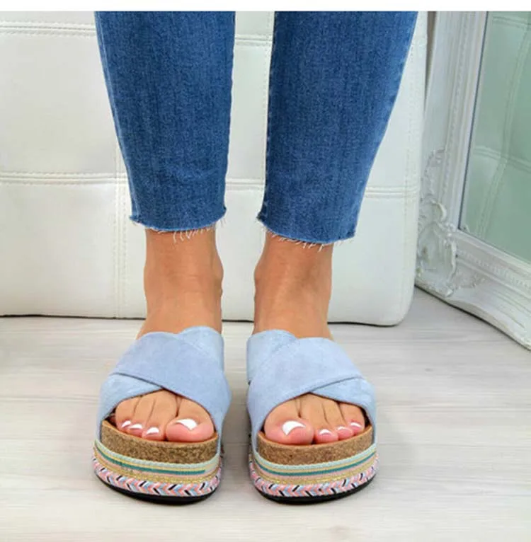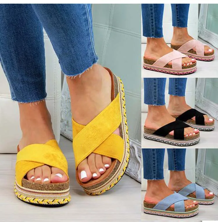 Летние пляжные женские сандалии обувь на толстой подошве в народном стиле женская обувь сандалии с перекрестными ремешками из пеньковой веревки размера плюс