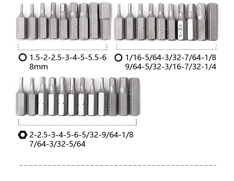 Данный товар подходит для все виды 6,35 мм, 1/4 ручки отвертки, в том числе часто используемые отверточных головок.