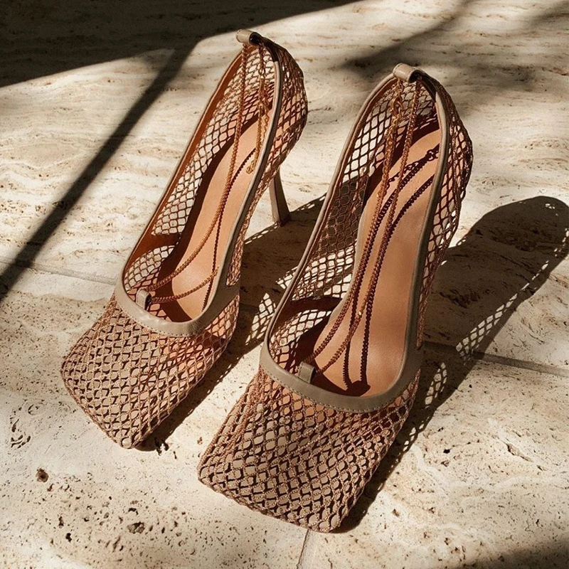 Женские босоножки на плоской подошве с заклепками и открытым носком Размеры 35
