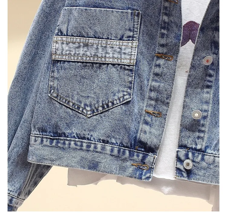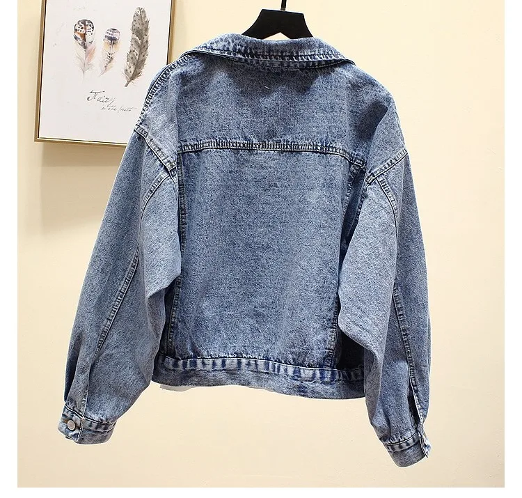 Женская джинсовая куртка LXUNYI Повседневная Свободная с отделкой бисером весна