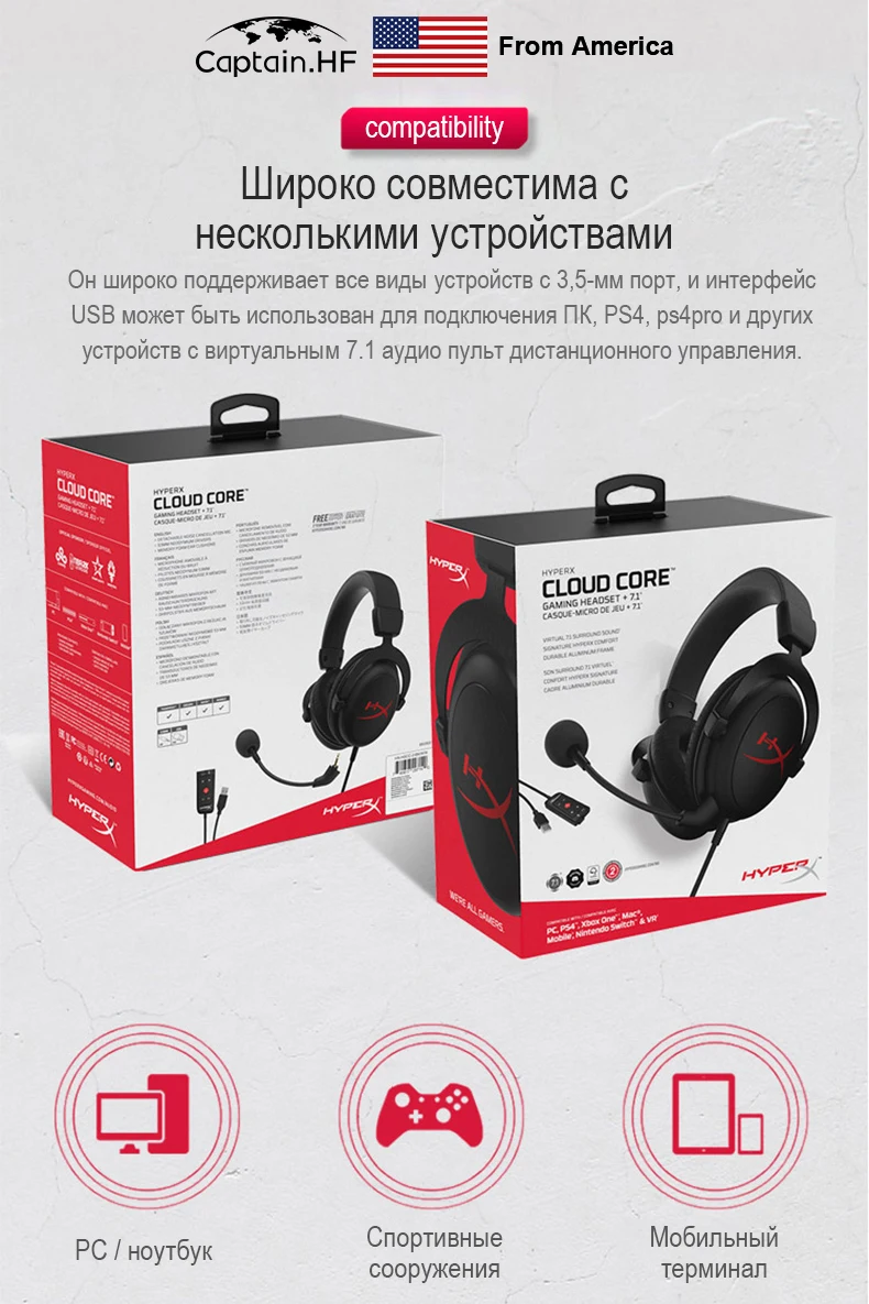 Игровая гарнитура HyperX Cloud Широкое семейство гарнитур Cloud предназначено для удовлетворения потребностей любых геймеров, не зависимо от их игровых систем, игрового стиля и привычек. Если вам нужна гарнитура с поддержкой виртуального объемного звука 7.1 для ПК или стереогарнитура для консоли, вы всегда сможете подобрать оптимальную гарнитуру Cloud. Все модели гарнитур Cloud позволяют играть на протяжении многих часов с максимальным комфортом, благодаря знаменитой фирменной пене HyperX™ с памятью формы. Динамики 53 мм обеспечивают кристальную чистоту и точность звука, а закрытые чашки изолируют от шумов для полного погружения в игру. Долговечная алюминиевая рама разработана специально для активного использования гарнитуры каждый день. Благодаря съемному микрофону Cloud с функцией шумоподавления, ваш голос будет всегда хорошо слышно. Преимущества Комфортные амбушюры из пены с памятью формы и оголовье с подкладкой из кожзаменителя Долговечная цельная алюминиевая рама отличается высокой надежностью при ежедневном гейминге Динамики диаметром 53 мм класса Hi-Fi обеспечивают превосходное качество звука с эффектом погружения в игру Пассивное шумоподавление, благодаря закрытой конструкции чашек, оптимизированной для профессионального гейминга Съемный микрофон с функцией шумоподавления Благодаря сертификации TeamSpeak и Discord, вас всегда будет хорошо слышно Совместимость с ПК, Xbox One®*, Xbox One S*, PS4™, PS4 Pro, Mac®, мобильными устройствами** и системами VR*** Гарантия — два года, бесплатная техническая поддержка Ключевые характеристики Технология Virtual 7.1 Surround Sound обеспечивает превосходную точность звука, давая вам дополнительное преимущество над соперниками. Доступно в Cloud II. Встроенное управление звуком Встроенное управление звуком избавляет от необходимости копаться в меню консоли, когда вам нужно отключить микрофон или изменить громкость. Доступно в CloudX и Cloud Silver. Сменные подкладки Выберите амбушюры с велюром или кожзаменителем для звукового профиля и стиля, которые подходят именно вам. Доступно в Cloud, Cloud II и CloudX. Передовой блок управления звуком Передовой USB-блок управления звуком со встроенной звуковой картой цифровой обработки сигналов (DSP) усиливает звук и голос. Доступно в Cloud II. Лицензия Xbox Гарнитура CloudX, предназначенная для Xbox, протестирована и одобрена для использования компанией Microsoft.