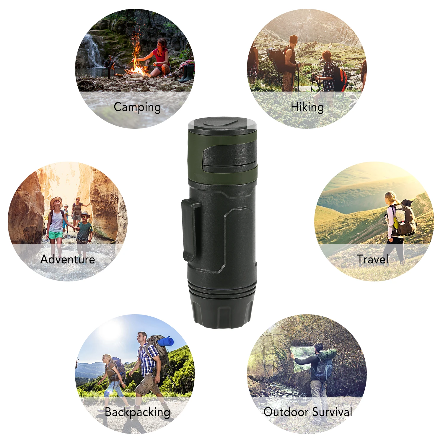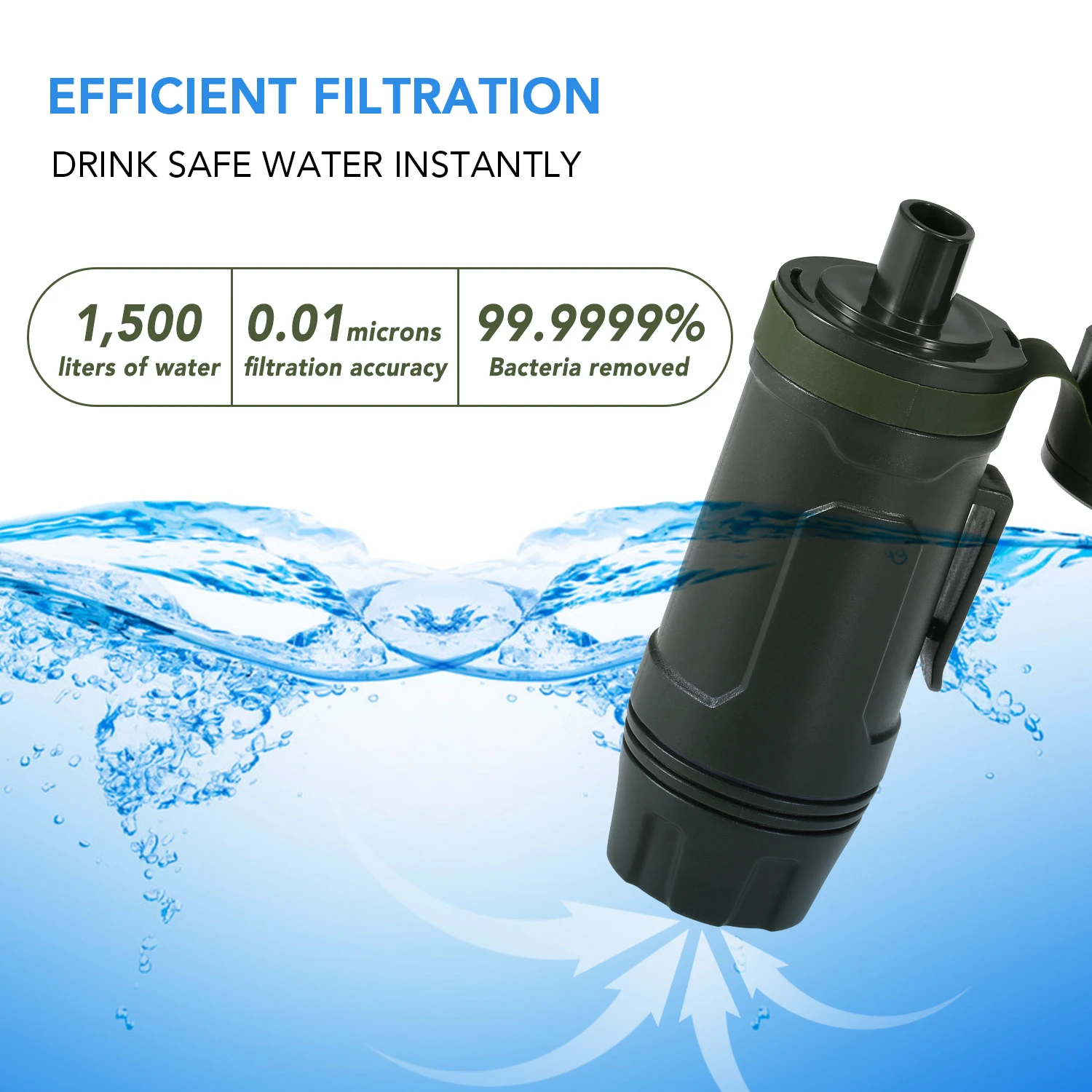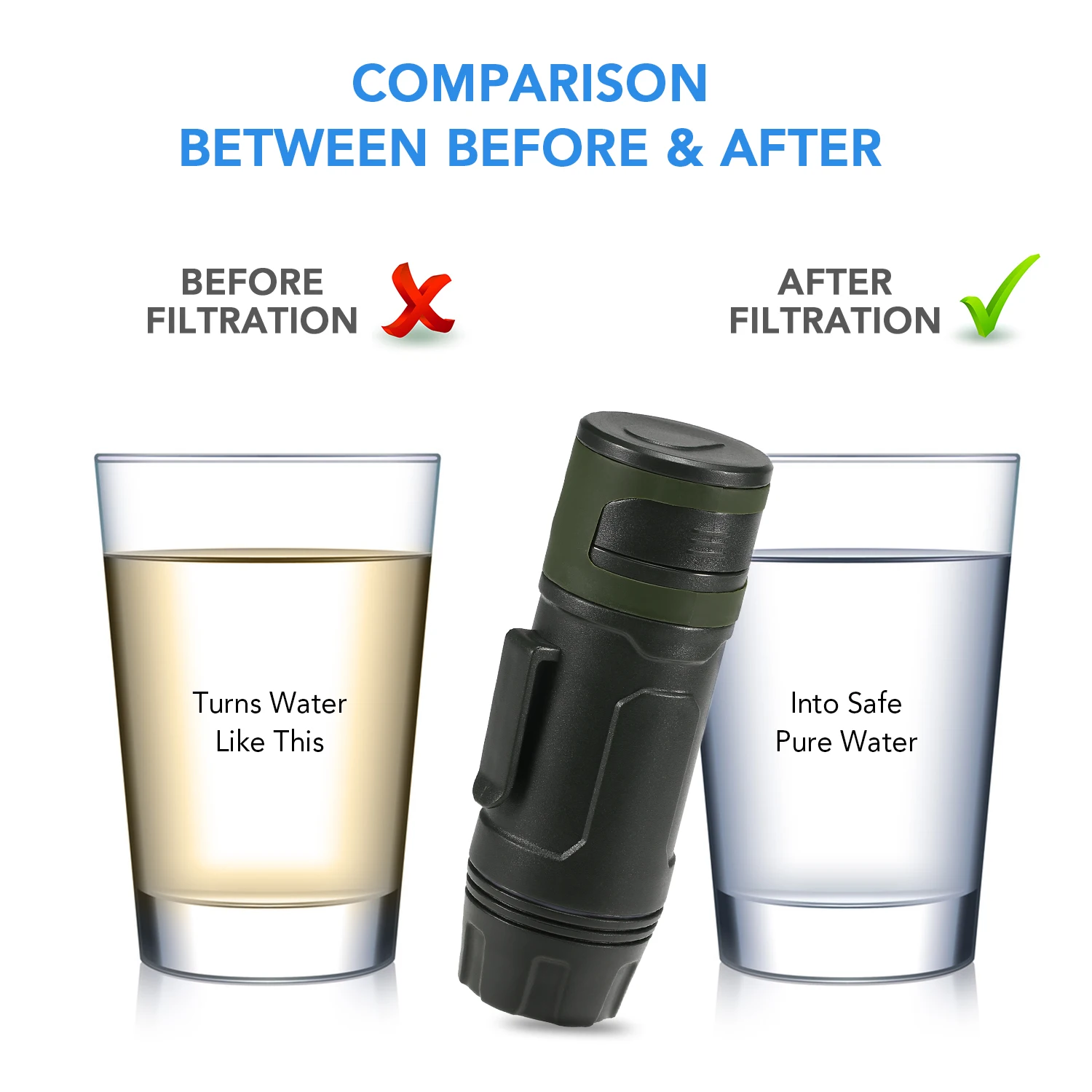 Этот фильтр для воды соломинка может эффективно удалить бактерии в воде, чтобы обеспечить чистую, безопасную воду. Он идеально подходит для чрезвычайных ситуаций на открытом воздухе, кемпинга, пеших прогулок, альпинизма и т. д.