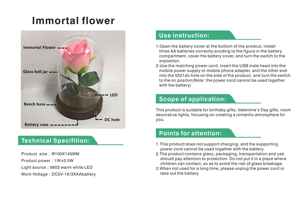 Name: Glass Bottle Rose Everlasting Flower Light (Simulation Flower)