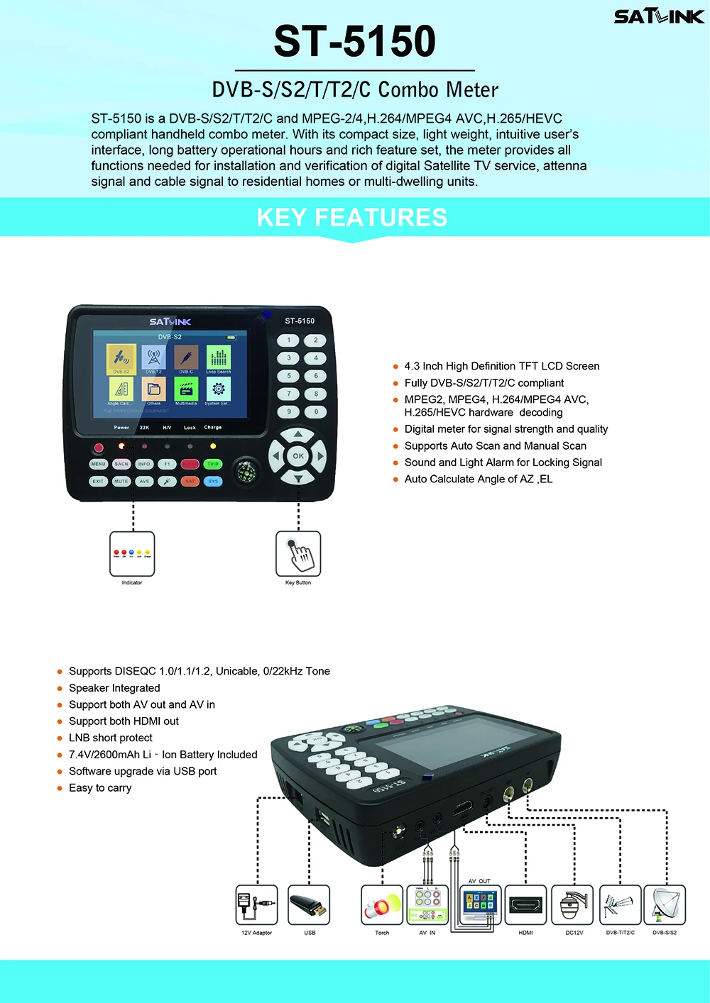 ST-5150 DVB-S/S2/T/T2/C и MPEG-2/4,H.264/MPEG4 AVC,H.265/HEVC (8 бит)