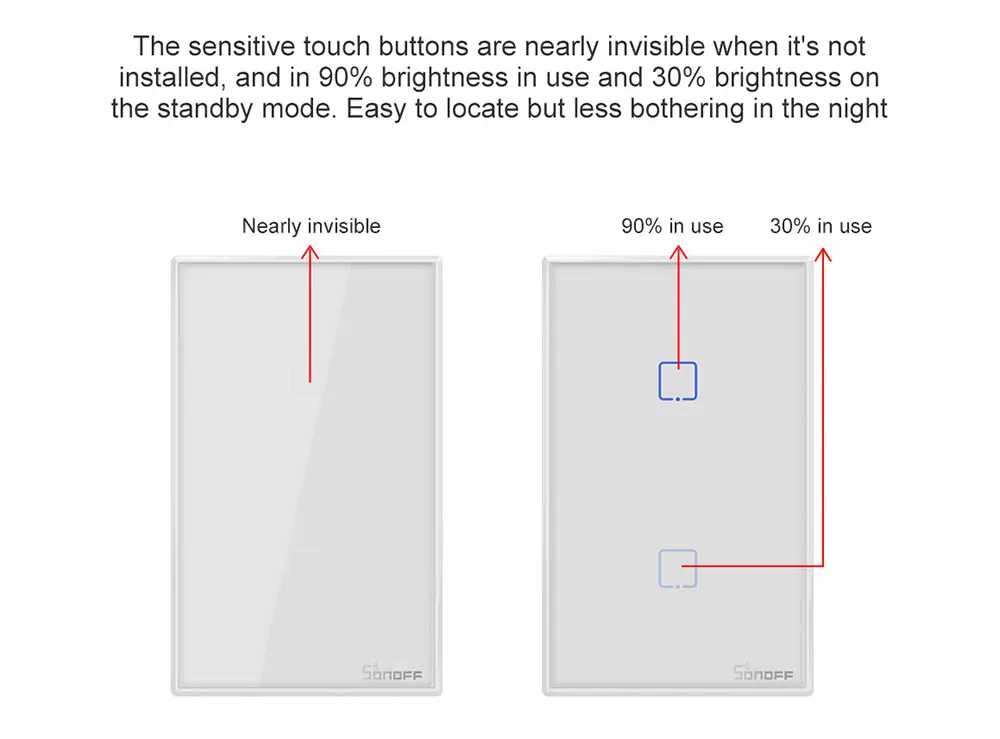 Умный настенный переключатель SONOFF T0US Wifi можно управлять удаленно с помощью телефона, а устройства, подключенные к переключателям, могут работать независимо. Работает с Amazon Alexa и Google Assistant, который позволяет включать или выключать ваши устройства с голосовой командой, идеально подходит для тех, кто должен обрабатывать много домашней работы одновременно. Небольшой кран для более легкого управления. Установите время для устройств, и переключатели помогут вам включить или выключить их автоматически. Портной смарт-сцена для ваших приборов. Просто установите событие, чтобы вызвать одно устройство SONOFF или группы устройств с помощью нажатия на вашем телефоне. Ваши устройства не будут работать из-за аномальной сети Wi-Fi, управление локальной сети, следовательно, разработано, чтобы убедиться, что они могут нормально работать.