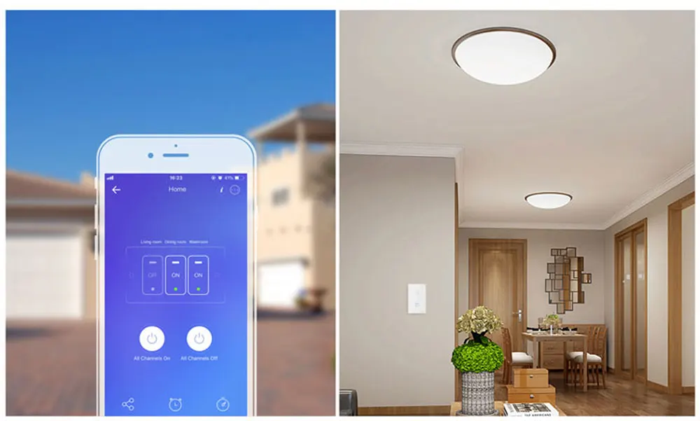 Просто нажмите на приложение eWeLink, чтобы включить светильник в любое время и в любом месте. Освещенный дом ожидает вашего прибытия