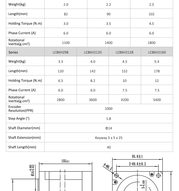 | 1 | Шаговый двигатель с замкнутым контуром 2PH Nema34 | LC86H2128 | 1 |