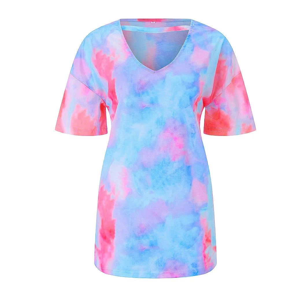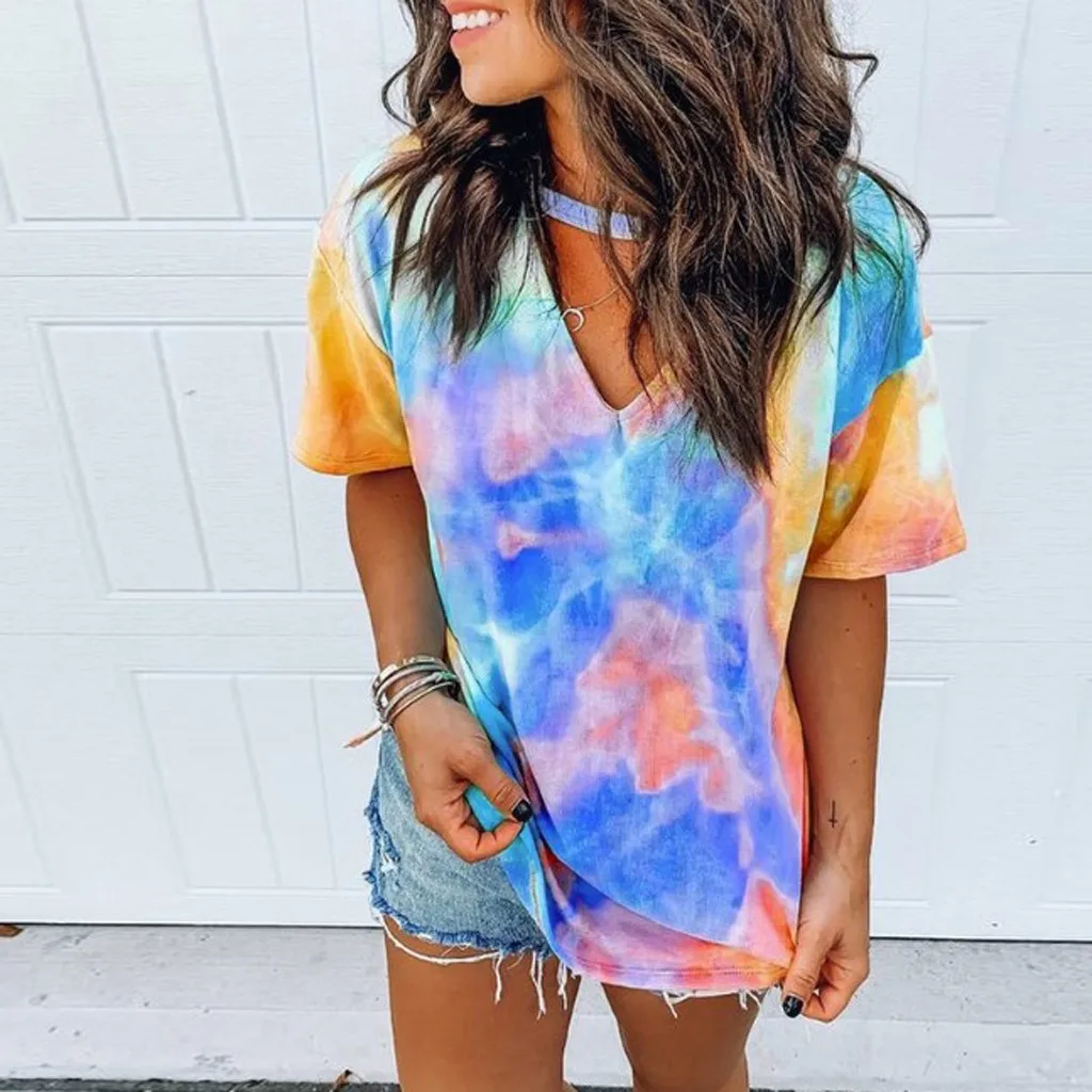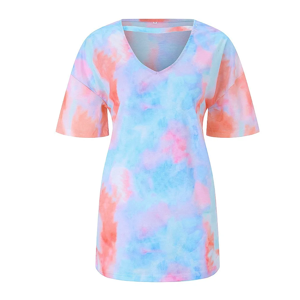 Модная женская Повседневная Свободная Сексуальная футболка с принтом и v-образным вырезом и короткими рукавами