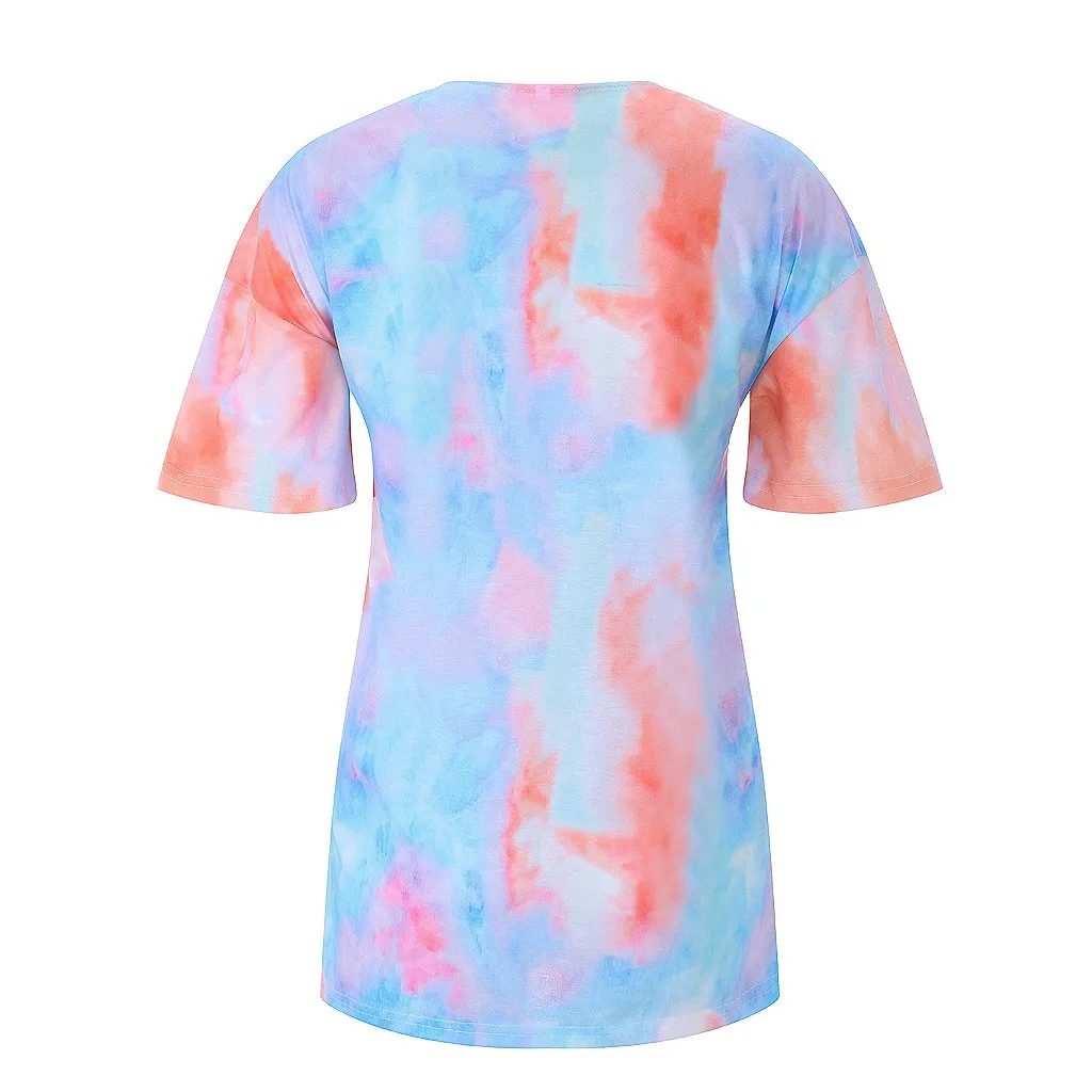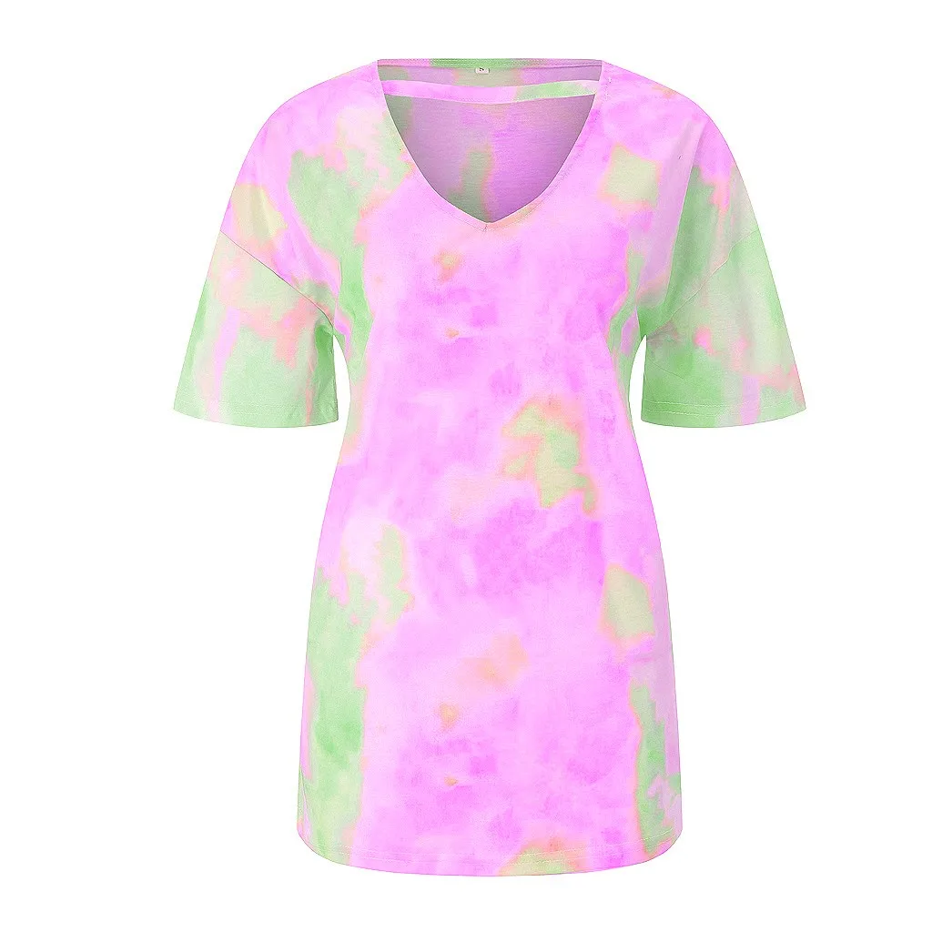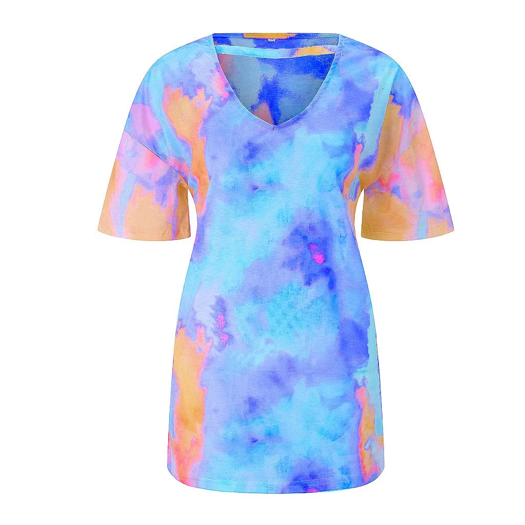 Модная женская Повседневная Свободная Сексуальная футболка с принтом и v-образным вырезом и короткими рукавами