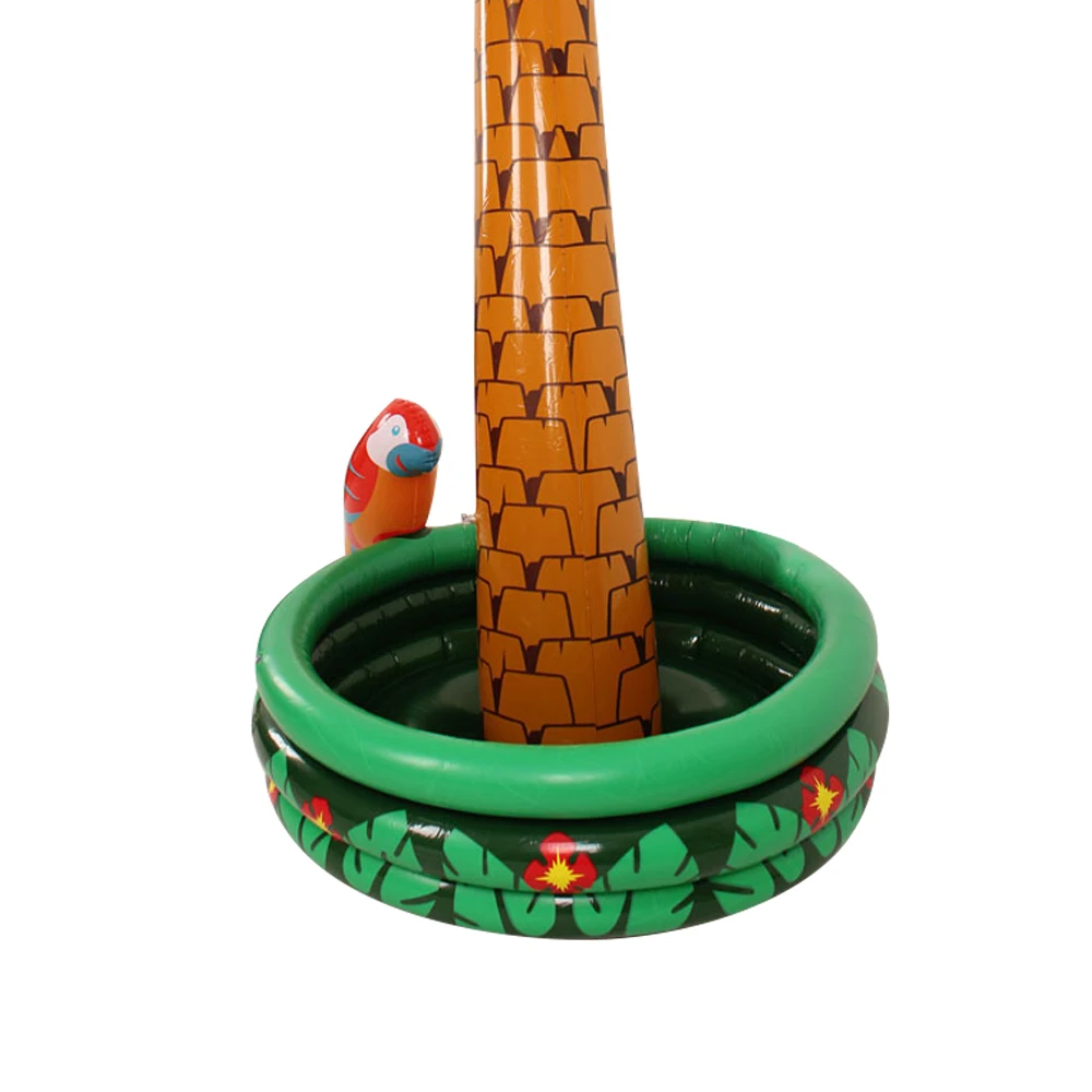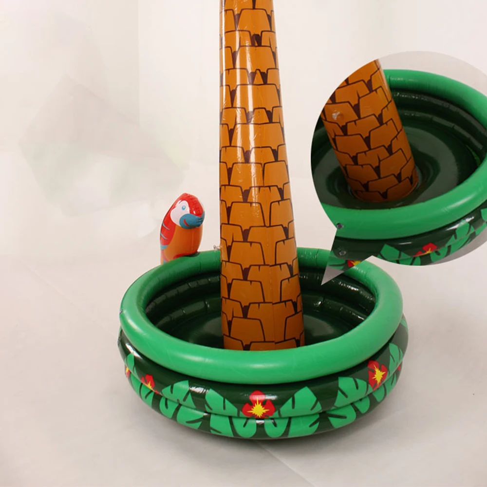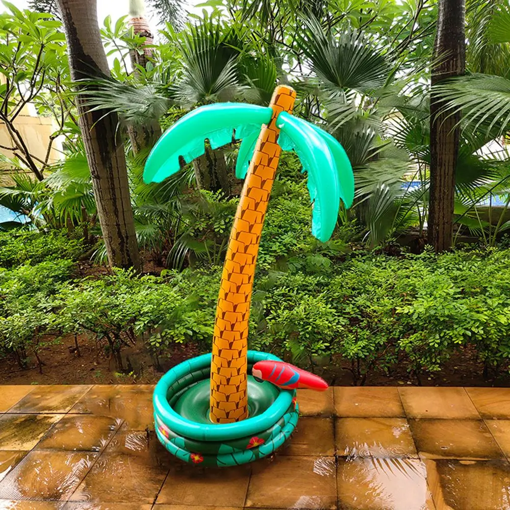 Это Надувное ведро для льда изготовлено в яркой форме кокосовой пальмы и украшено попугаем с одной стороны, что обеспечивает летнее дыхание.