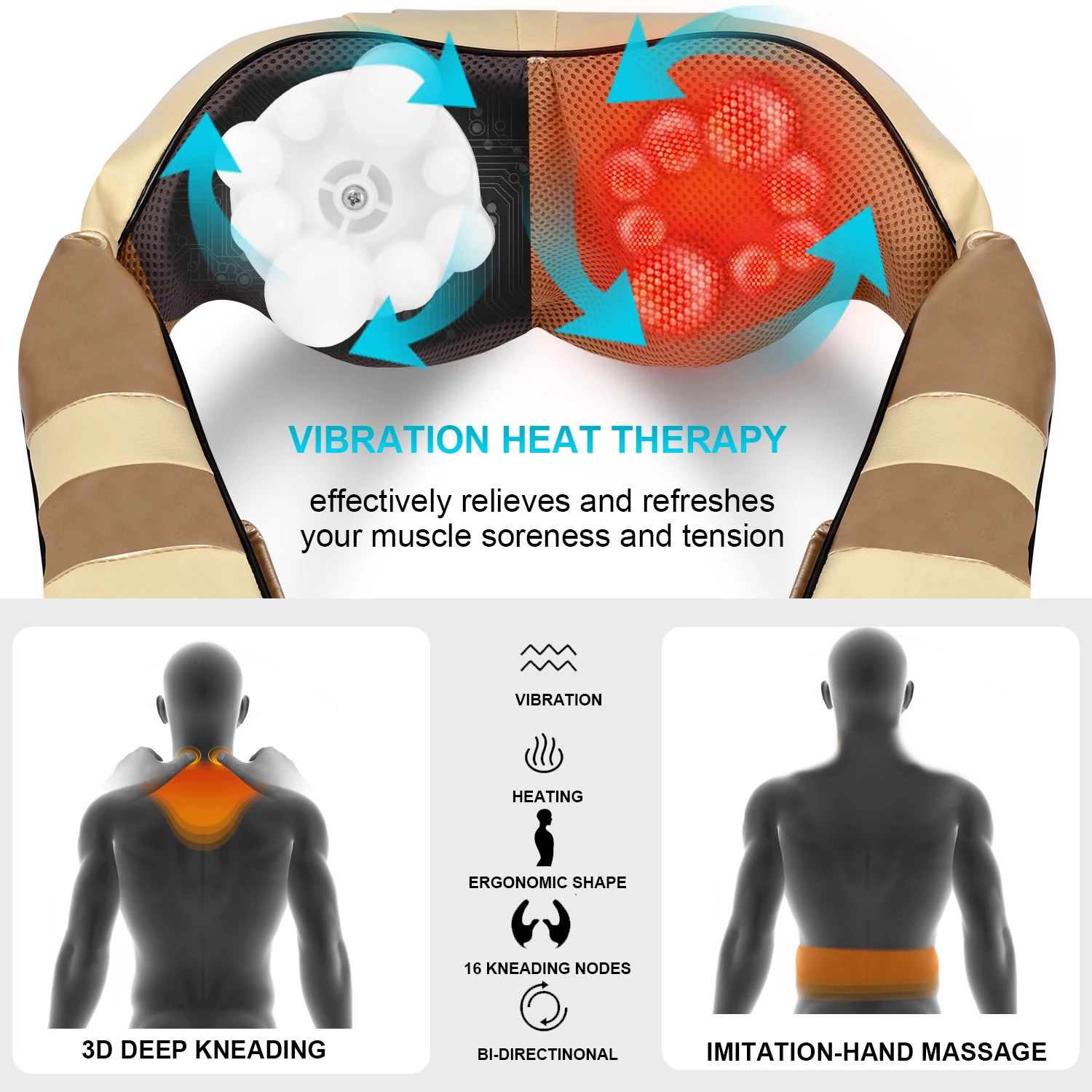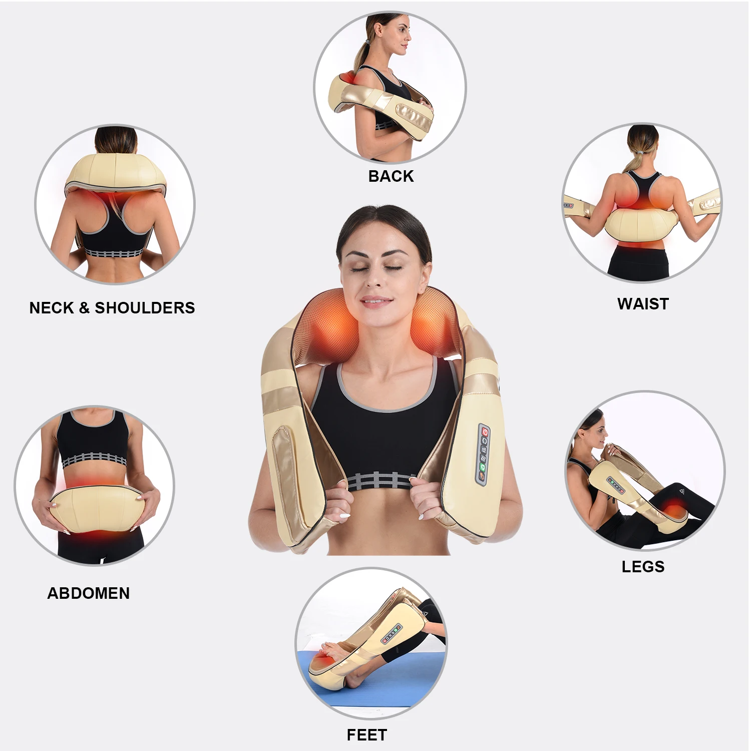 Благодаря инфракрасному нагреву, наш Массажер шиацу для спины и шеи с теплом может обеспечить необходимую теплоту, чтобы облегчить мышечное напряжение, стресс и повысить циркуляцию крови. Конструкция защиты от перегрева делает массажер для спины и шеи автоматически отключится через 15 минут использования, Массажер для шеи и спины также может быть отключен вручную. Массажер для шеи и спины принесет вам удовольствие.